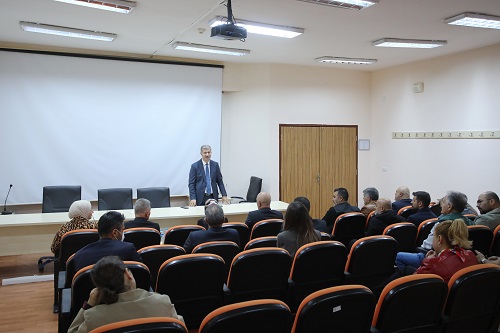 Toplantıda Spor Bilimleri Fakültesi Dekanı Prof. Dr. Gökhan Bayraktar fakültede yürütülen akademik ve sportif çalışmalar hakkında detaylı bir sunum yaptı.