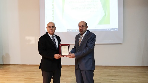 Etkinlik sonunda Ağrı Valisi Mustafa Koç’un konuşmacı Prof. Dr. Adem Esen’e plaket takdim ederken Prof. Dr. Adem Esen de AİÇÜ Rektör Vekili Prof. Dr. Erdal Yılmaz’a kütüphaneye bağışlanmak üzere kitap hediye etti.