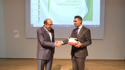 Seminerde öncelikle konuşmacı olarak katılan İstanbul Üniversitesi Siyasal Bilgiler Fakültesi Dekanı Prof. Dr. Adem Esen’in özgeçmişi okunduktan sonra Prof. Dr. Adem Esen tarafından “Sürdürülebilir Kalkınma Amaçlarının İl ve İlçe Yönetimleri Düzeyinde Analizi” seminer sunumu gerçekleştirildi.