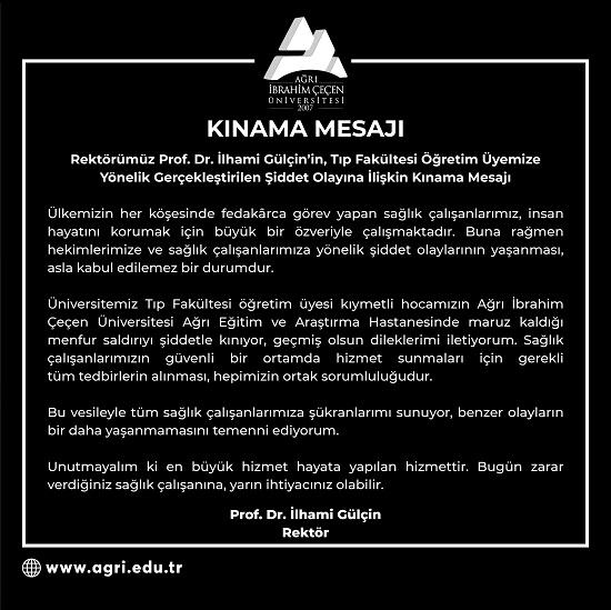 Rektörümüz Prof. Dr. İlhami Gülçin'in, Tıp Fakültesi Öğretim Üyemize Yönelik Gerçekleştirilen Şiddet Olayına İlişkin Kınama Mesajı