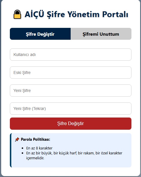 sifreportal.agri.edu.tr üzerinden belirlemiş olduğunuz yeni şifre ile sağlanacaktır.