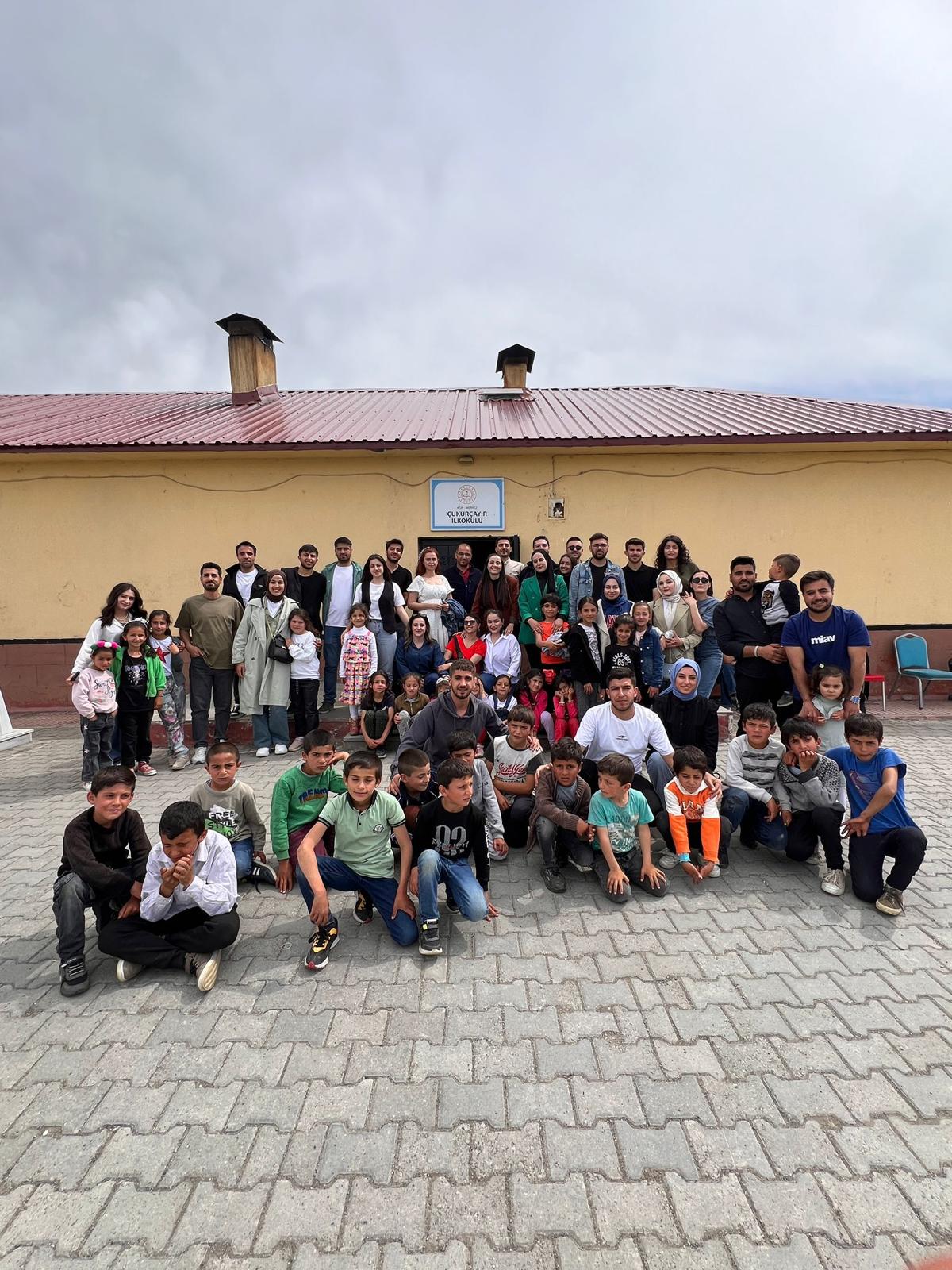 Etkinliğin İçeriği ve Özeti: Topluma Hizmet Uygulamaları ve Gönüllülük Çalışmaları dersi kapsamında Ağrı Merkez Çukurçayır Köyü’nde yer alan Çukurçayır İlkokulu’nda öğrenim gören çocuklara yönelik çeşitli etkinlikler gerçekleştirildi. Kitap okuma, boyama, oyun oynama ve tiyatro gösterileri gibi çeşitli etkinlikler yapılarak çocukların güzel vakit geçirmeleri ve eğlenmeleri sağlanmıştır. Bu kapsamda sosyo-ekonomik imkânları kısıtlı olan bölgelerde öğrenim gören çocukların toplumsallaşmalarına ve güzel vakit geçirmelerine katkı sağlanmaya çalışılmıştır. Ayrıca etkinlik sonucunda çocuklara çeşitli hediyeler verilmiştir.