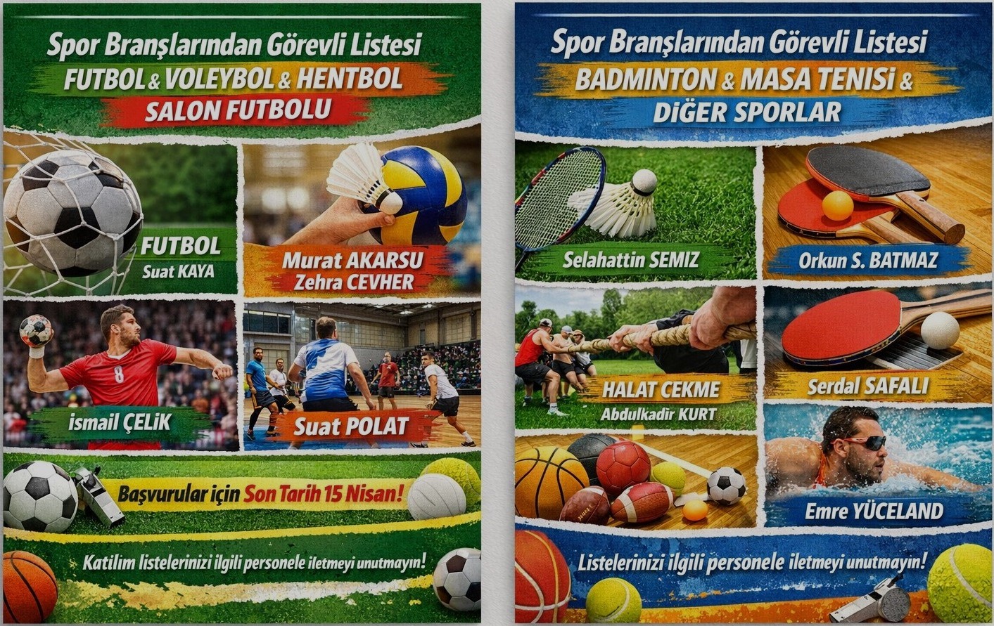 Spor Branşları Görevli Listesi