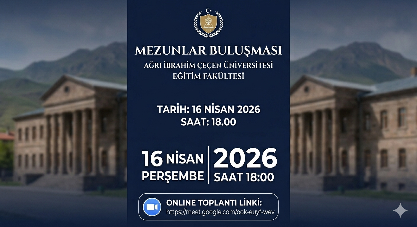 Ağrı İbrahim Çeçen Üniversitesi Eğitim Fakültesi Mezun toplantımız perşembe günü saat 18.00’de online olarak gerçekleştirilecektir. Tüm Mezunlarımız davetlidir.