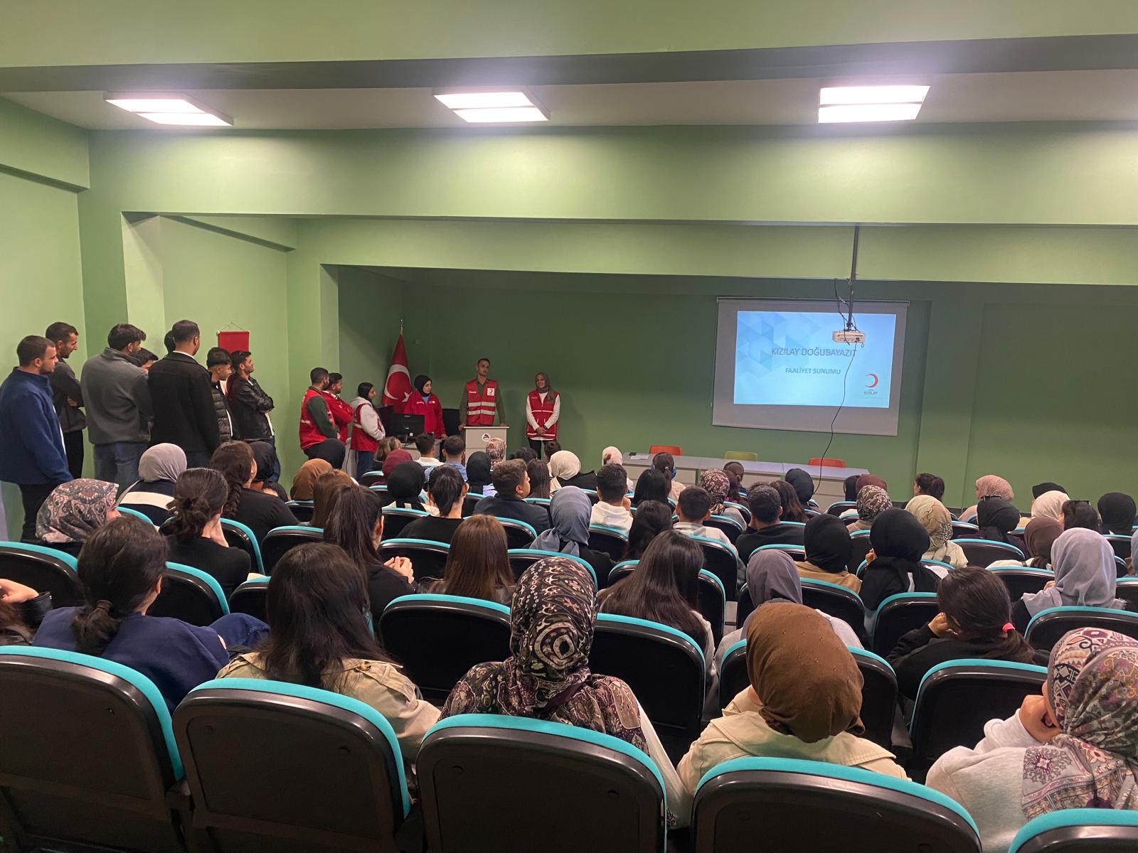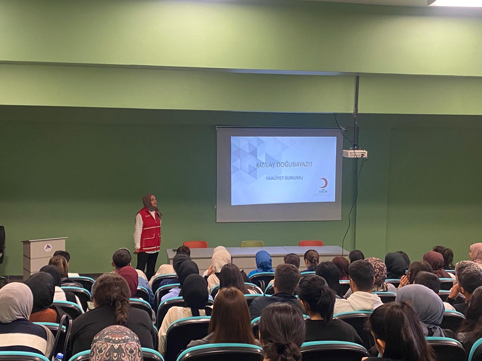 Doğubayazıt Ahmed-i Hani Meslek Yüksekokulumuz bünyesinde faaliyet gösteren Kızılay Öğrenci Kulübümüz ve Türk Kızılay'ı Doğubayazıt Şubesi işbirliğinde gerçekleştirilen farkındalık etkinliklikleri çerçevesinde öğrencilerimize seminer verildi.