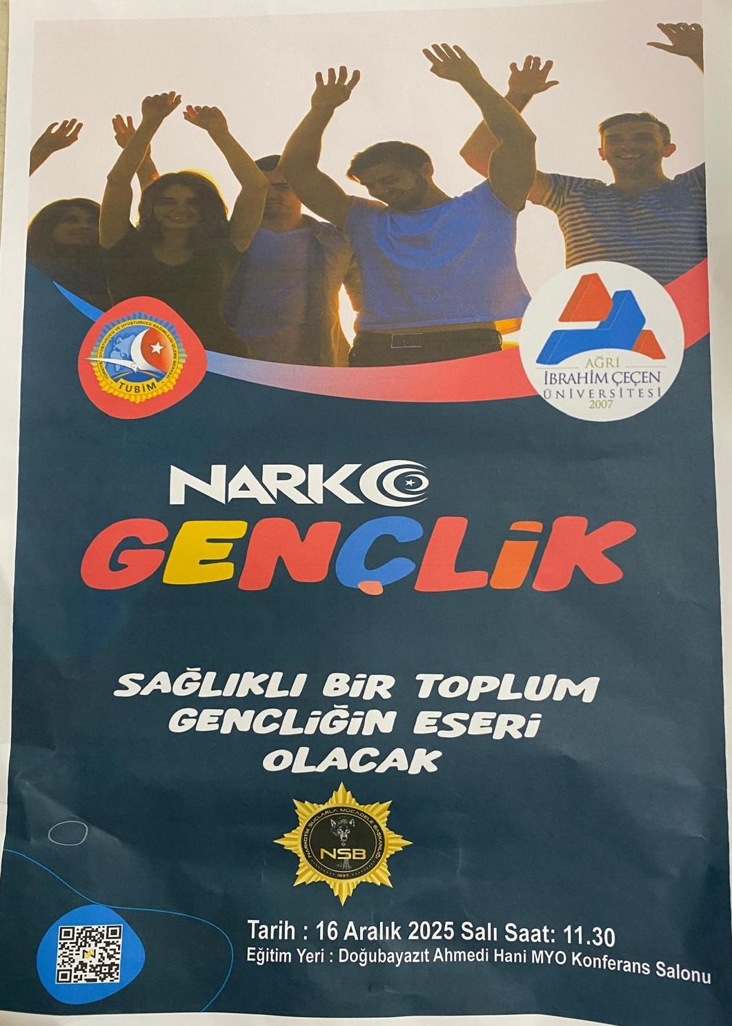 İçişleri Bakanlığı tarafından uyuşturucu ile mücadele faaliyetleri kapsamında, "Narko Gençlik" projesi ile Doğubayazıt İlçe Emniyet Müdürlüğü tarafından Yüksekokulumuz öğrencilerine yönelik Madde Bağımlığı ile Mücadele hakkında bilgilendirme semineri düzenlendi.