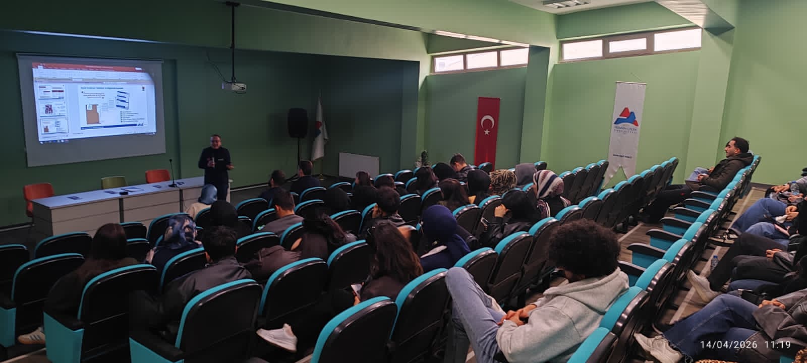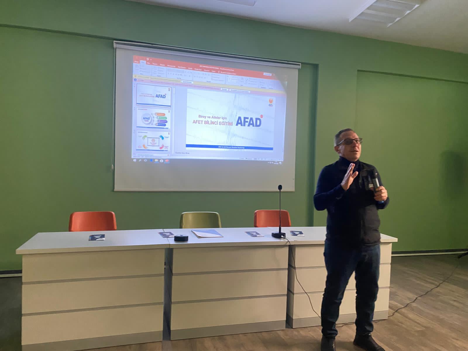 AFAD Ağrı İl Müdürlüğü’nde görevli Şube Müdür Vekili Abdulkadir Kılıç tarafından, Ahmed-i Hani Meslek Yüksekokulu öğrencilerine yönelik afet farkındalık eğitimi gerçekleştirildi. Düzenlenen eğitimde, deprem, yangın ve sel gibi doğal afetler karşısında doğru davranış biçimleri ele alındı.