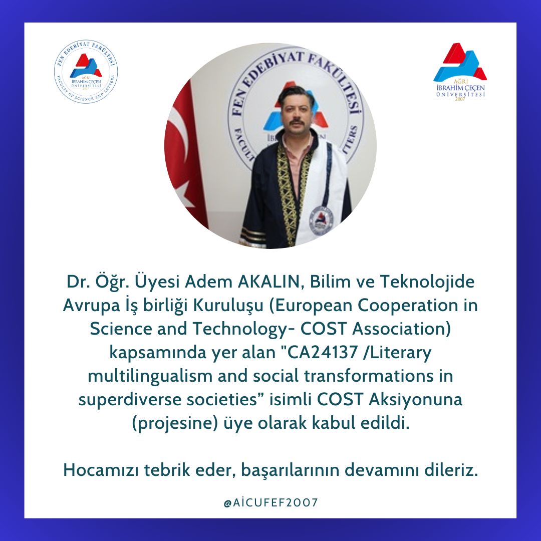Dr. Öğr. Üyesi Adem AKALIN, COST Aksiyonuna Üye Olarak Kabul Edildi
