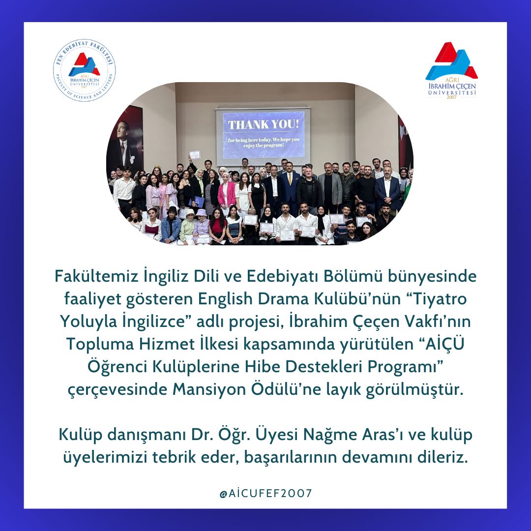 Fakültemiz İngiliz Dili ve Edebiyatı Bünyesinde Bulunan English Drama Klübü'nün "Tiyatro Yoluyla İngilizce" Projesi Ödüle Layık Görüldü