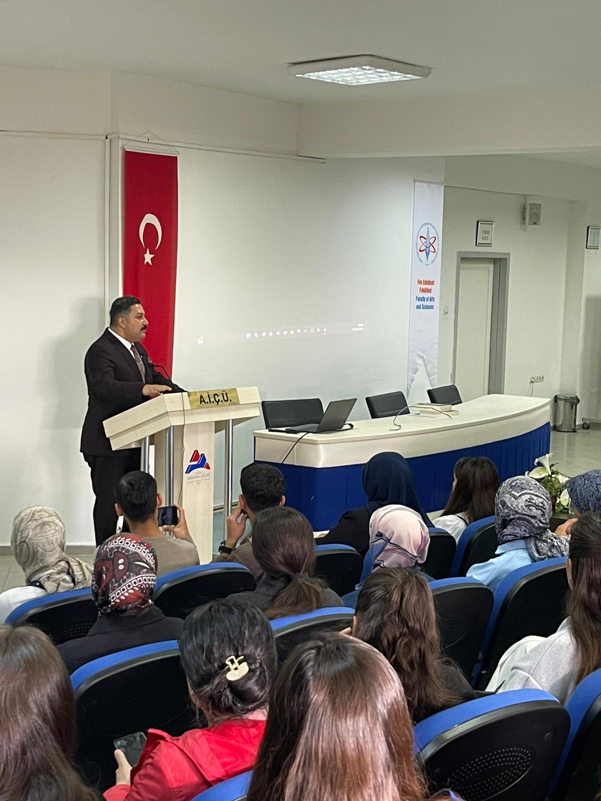 Fakültemiz Coğrafya Bölümü içerisinde faaliyet gösteren Coğrafya Kulübü, Ağrı Valiliği ile iletişime geçerek “Coğrafya Kader mi?” konulu bir seminer düzenledi. Ağrı Valisi sayın Mustafa Koç, Ağrı İbrahim Çeçen Üniversitesi Rektörü sayın Prof. Dr. İlhami Gülçin, Fen Edebiyat Fakültesi Dekanı sayın Prof. Dr. Alperen Kayserili, Coğrafya bölümü öğretim üyeleri ve öğretim elemanları ile öğrencilerin katıldığı seminerde sayın valimizin yanı sıra Fakültemizin dekanı ve Coğrafya Bölüm Başkanı Prof. Dr. Alperen Kayserili, Coğrafya bölümü öğretim üyelerinden Prof. Dr. Emine Teyfur, Coğrafya Kulübü Danışmanı Dr. Öğr. Üyesi Tolga Korkusuz ve Coğrafya Kulübü Başkanı Nurdan Çeliközer’in konuşmaları ile Coğrafyanın kader olmadığı, insanların hangi coğrafi şartlarda olursa olsun kendi kaderlerini kendilerinin belirlediğine dikkat çekildi.