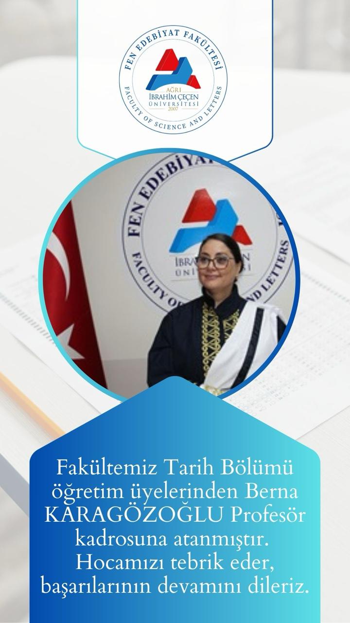 Fakültemiz Tarih Bölümü Öğretim Üyelerinden Berna KARAGÖZOĞLU Profesör Kadrosuna Atanmıştır