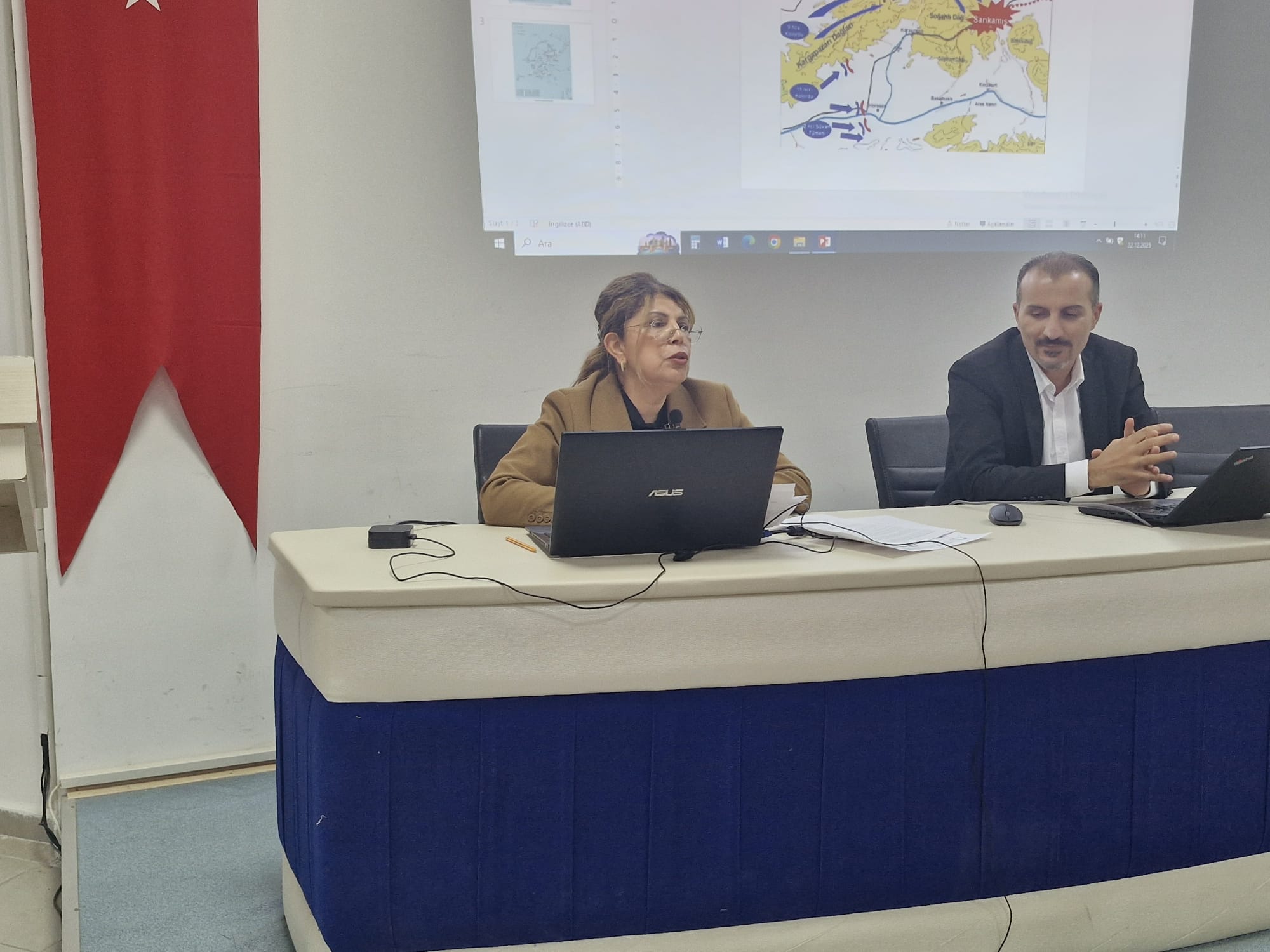 Fakültemiz Tarih Bölümü tarafından, konuşmacı olarak Prof. Dr. Figen Atabetey’in ve moderatör olarak Prof. Dr. Bilal Tunç’un katılımıyla “Sarıkamış Harekâtı Bir Vatan Savunmasının Tarihi Serüveni” konulu program düzenlenmiştir. Fakültemiz Konferans Salonu’nda gerçekleştirilen programa Dekanımız Prof. Dr. Alperen Kayserili’nin yanı sıra çok sayıda akademik personel ve öğrenci katılmıştır. Program sonunda Prof. Dr. Figen Atabetey ve Prof. Dr. Bilal Tunç’a katkılarından dolayı sertifika takdim edilmiştir.