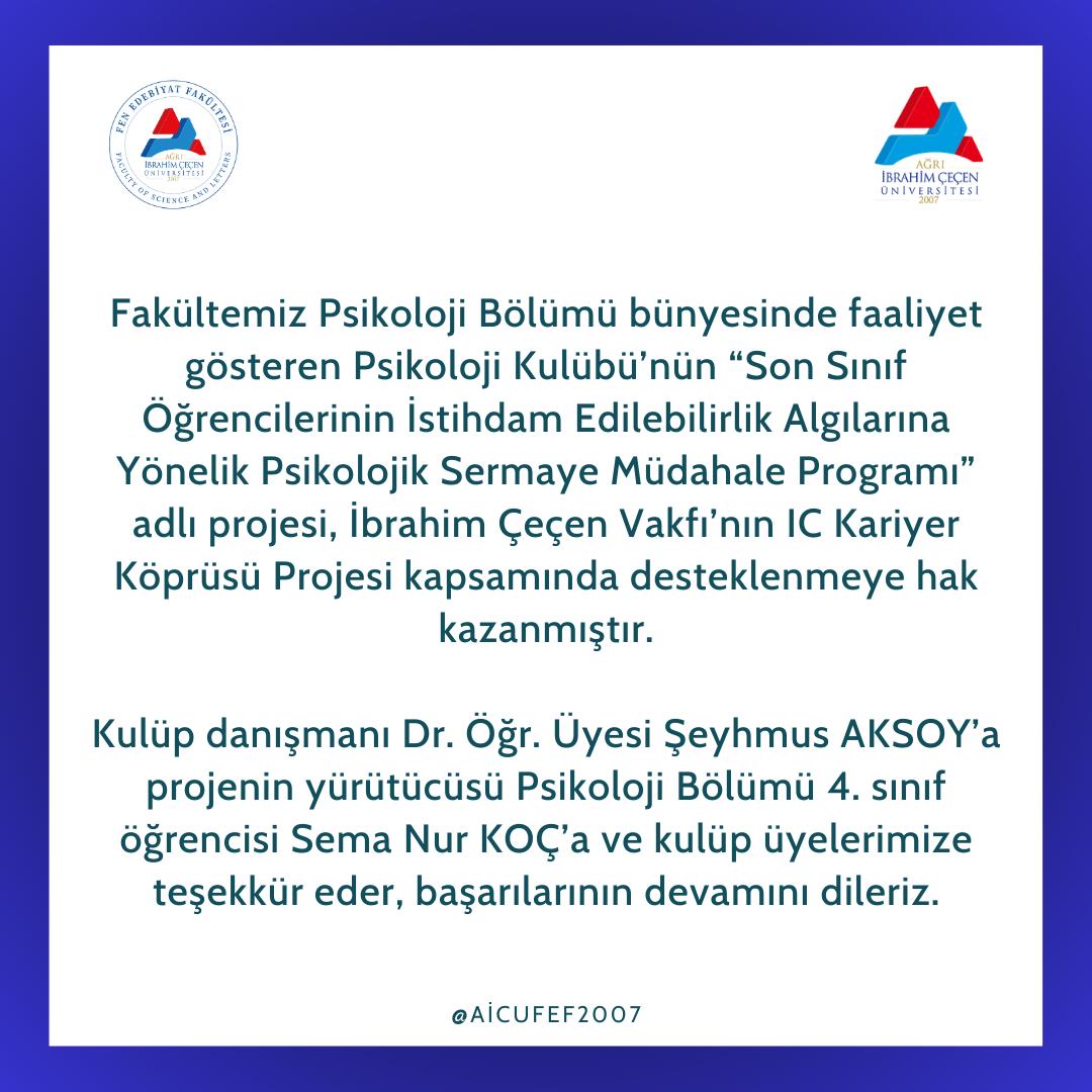 Psikoloji Bölümünde Bulunan Psikoloji Kulübünün Projesi İbrahim Çeçen Vakfı "IC Kariyer Köprüsü Projesi" Kapsamında Desteklenmeye Hak Kazanmıştır