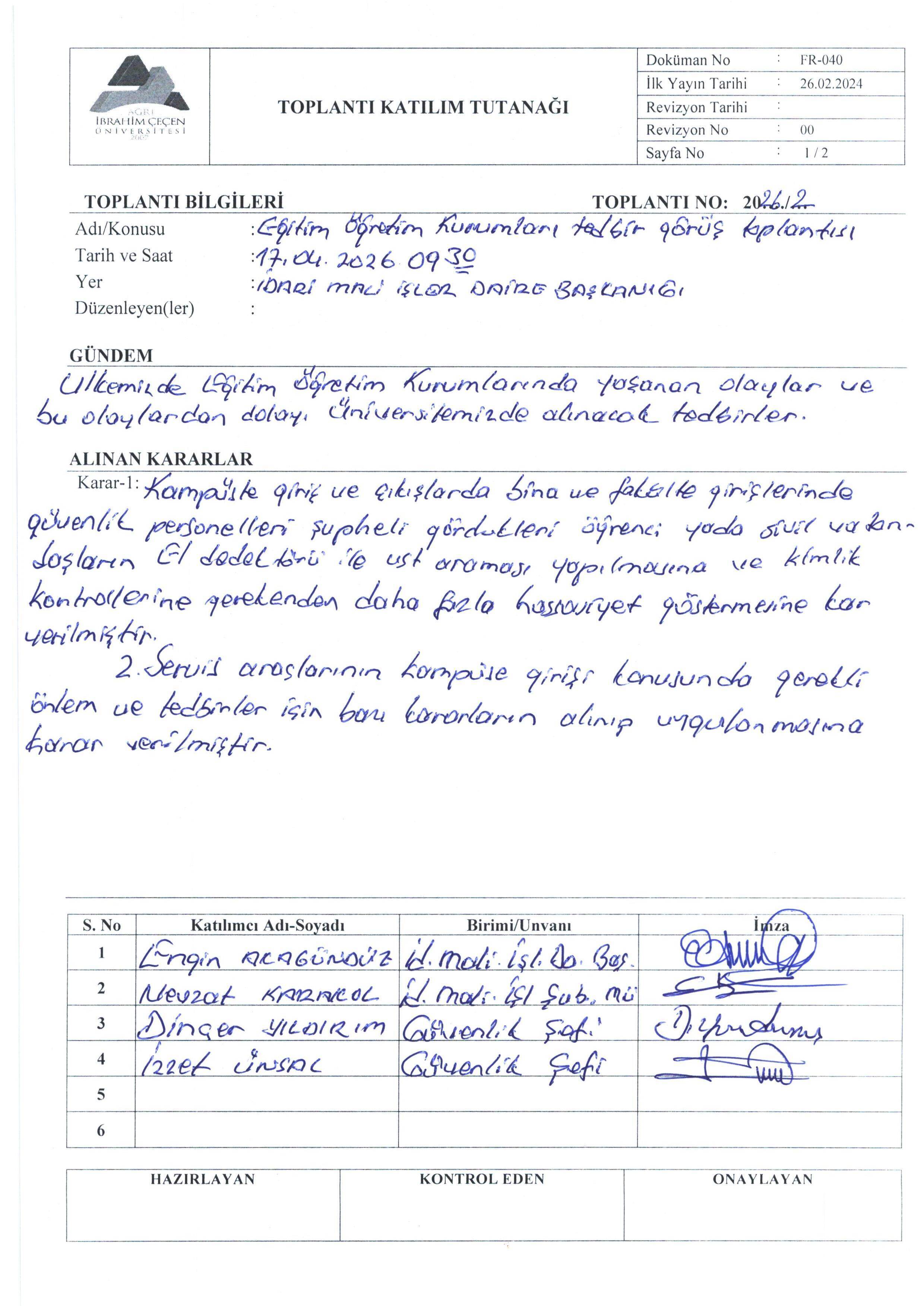2026 /2 GÜVENLİK KALİTE TOPLANTISI