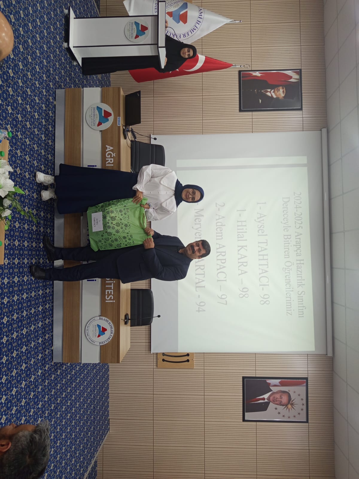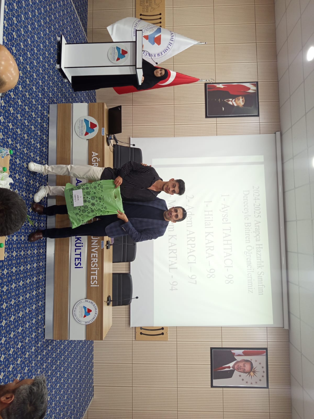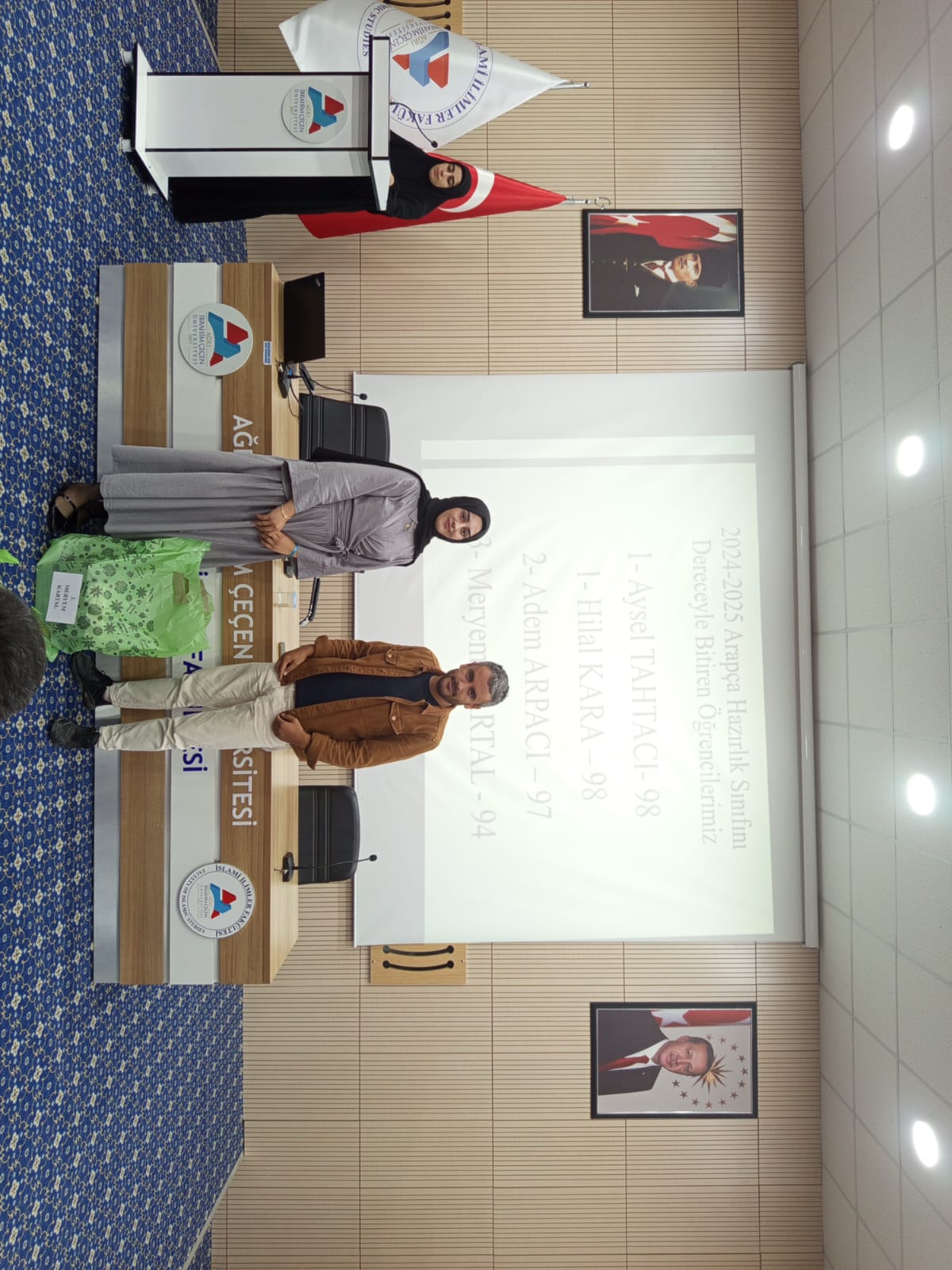 Sunuculuğunu birinci sınıf öğrencilerimizden Sümeyye ÖZDEMİR’in yaptığı programda bir önceki hazırlık senesinde dereceye giren öğrencilerimiz Aysel TAHTACI, Hilal KARA, Adem ARPACI ve Meryem KARTAL duygu, düşünce ve tecrübelerini dile getirdikleri konuşmalarını gerçekleştirdi. Ardından elde ettikleri bu başarılarından dolayı öğrencilerimize ödülleri takdim edildi. Daha sonra 2022-2023 akademik yılında hazırlık sınıfında derece etmiş olup şu anda üçüncü sınıf öğrencilerimiz olan Hülya GÜLER ile Meryem ZEYREK’in tecrübe ve tavsiyelerini ifade ettikleri konuşmalarının ardından program sona erdi.