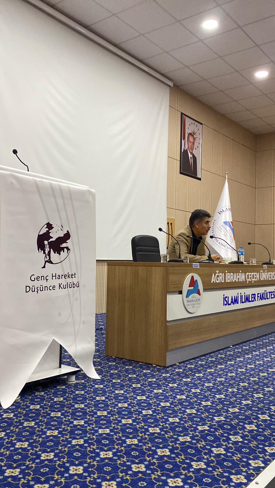 Program kapsamında Selçuklu konferans salonunda yapılan konferansta da "Modern Dünyanın Kurumları ve Ümmet Olmanın Yeni Formları" konulu sunum yapıldı. Açılış konuşmasını üniversite Rektörümüz. Prof. Dr. İlhami Gülçin'in yaptığı konferansta Prof. Dr. Orhan Atalay, Birleşmiş Milletler, Avrupa birliği gibi modern dünyanın insanın mutluluğu ve dünyanın barışı hedefiyle kurduğu kurumların süreç içerisinde bu işlevini yerine getiremediği, Gazze katliamının bu durumu açıkça ortaya koyduğunu belirtti. Yeni dünyaya ancak Kur'an'ın adalet temelli ilkelerini referans alarak Müslümanların ümmet olduklarında sahici barışı sunabileceklerini ifade etti.