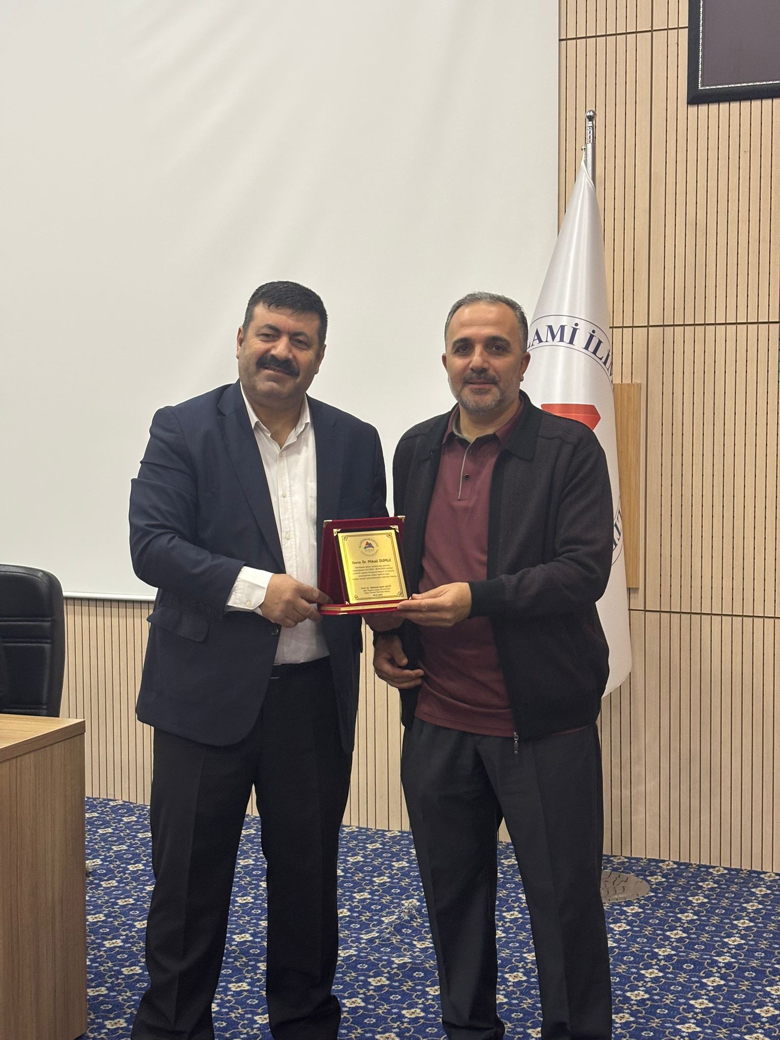 Fakültemizde dekan yardımcılığı görevinden ayrılan Dr. Öğr. Üyesi Mikail DUMLU hocamıza fakültemize yaptığı değerli hizmetler ve katkılarından dolayı plaket ve teşekkür belgesi takdim edildi.