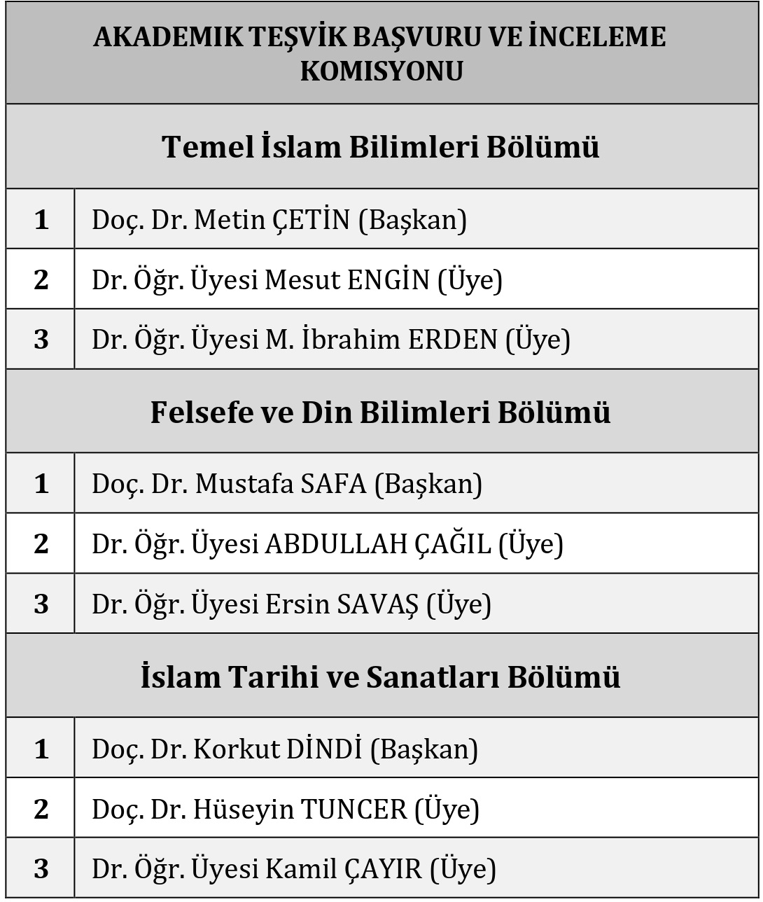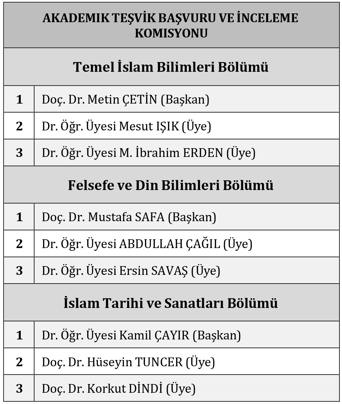 Komisyon: İslami İlimler Fakültesi Akademik Teşvik Başvuru ve İnceleme Komisyonunu,