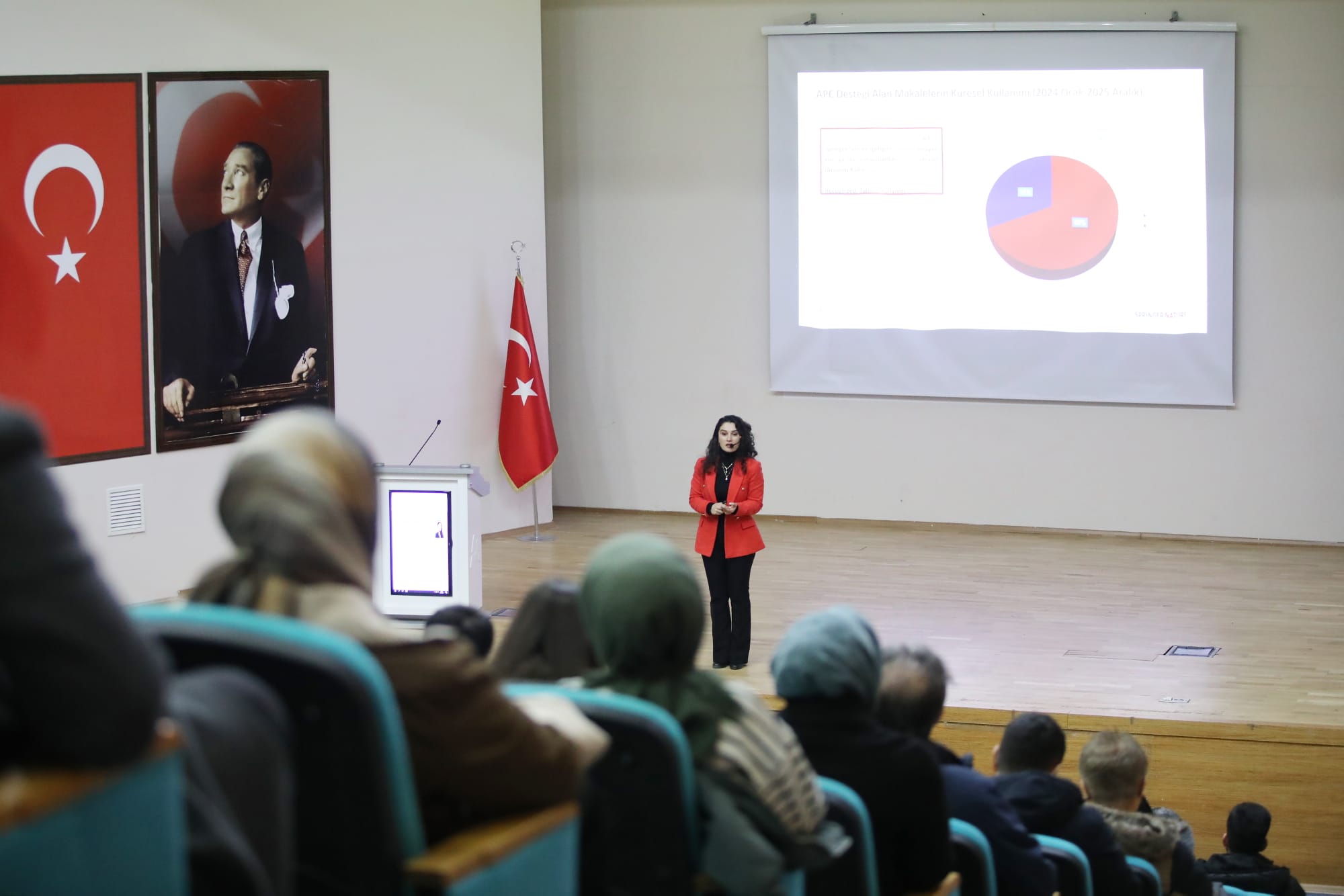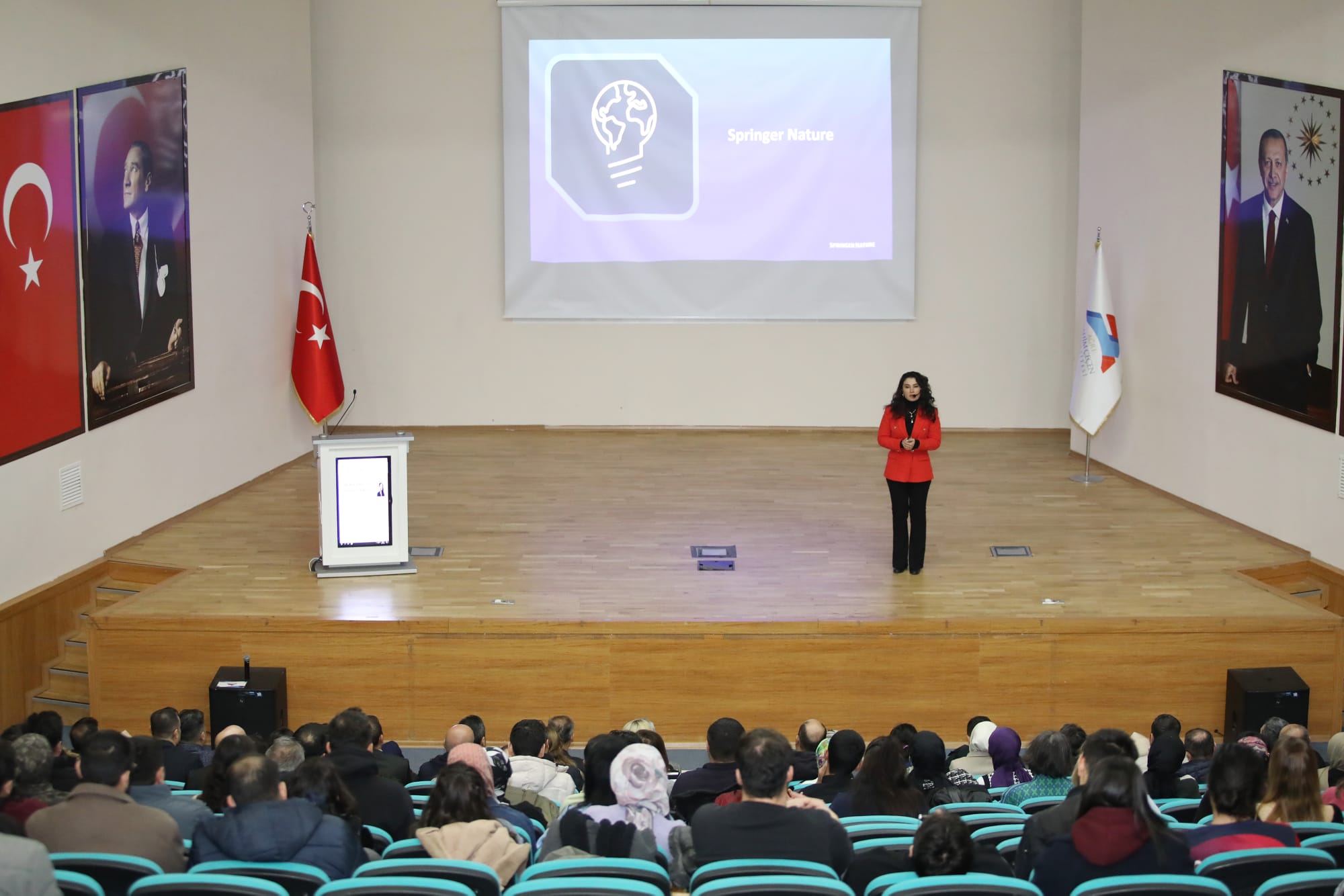 Kütüphane ve Dokümantasyon Daire Başkanlığımız tarafından Selçuklu Konferans Salonunda düzenlenen seminerde, Springer Nature Şirketi Yöneticisi Selin Şencanlı, makale hazırlama süreci, doğru dergi seçimi, başvuru aşamaları ve etkili akademik yazım konuları hakkında bilgi verdi.