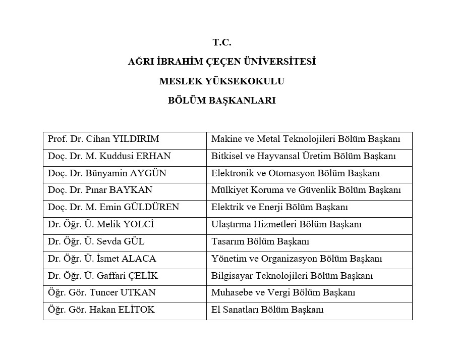 Bölüm Başkanları