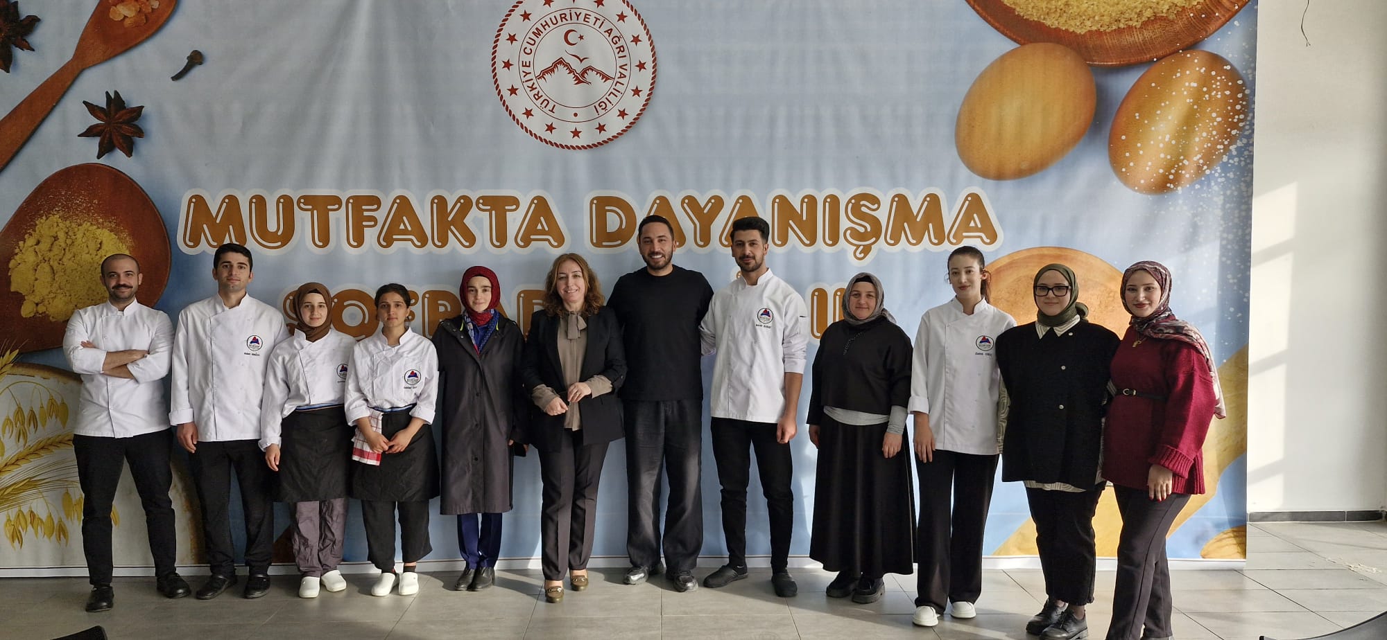 Ağrı İbrahim Çeçen Üniversitesi ve Ağrı Valiliği işbirliği ile gerçekleştirilen Glutensiz Mutfak Atölyesi projesi kapsamında, sosyal medyada geliştirdiği sağlıklı ve fonksiyonel tariflerle öne çıkan @mutfaktayusufvar hesabının sahibi Yusuf Adem Uzun, Ağrı Valisi Sn. Mustafa Koç'un eşi Neslihan Gül Koç, Ağrı Vali Yardımcısı Sn. Tuncay Karataş, Rektör Yardımcısı Prof. Dr. Yakup KARATAŞ ve eşi, Rektör Danışmanı Dr. Öğr. Üyesi Dilan Özmen Özgün, Turizm İşletmeciliği ve Otelcilik Yüksekokulu Müdürü Prof. Dr. Akif Arslan ve kıymetli akademisyen hocalarımız ile Ağrı'da ikamet eden çölyak farkındalığına sahip ailelerle biraraya gelerek glütensiz ürünler üretti.