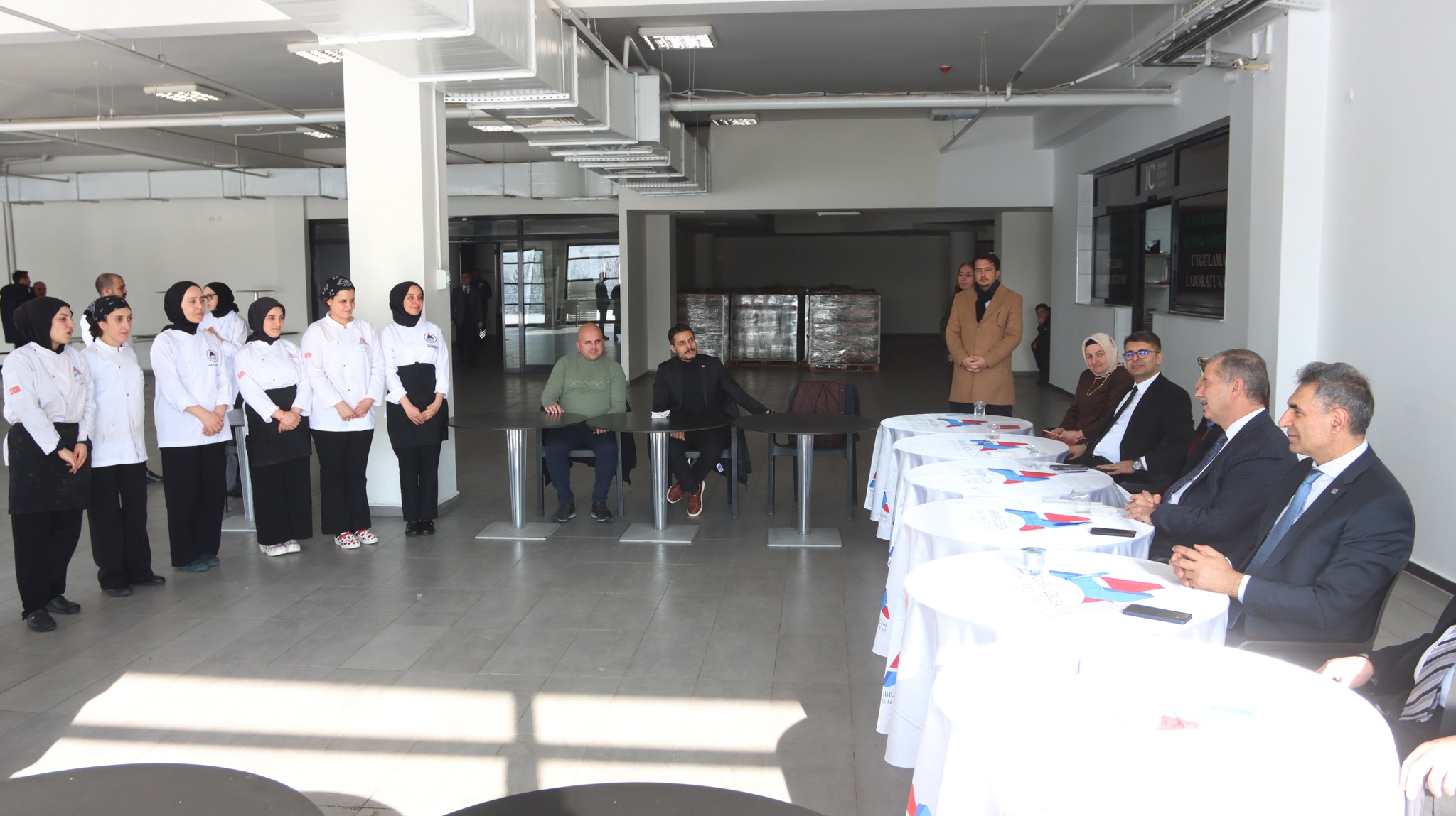Gastronomi ve Mutfak Sanatları Uygulama Laboratuvarında gerçekleştirilen etkinlikte Rektör Yardımcıları Prof. Dr. Erdal Yılmaz, Prof. Dr. Hülya Akıncıoğlu ve Prof. Dr. Yakup Karataş ile Turizm İşletmeciliği ve Otelcilik Yüksekokulu Müdürü Prof. Dr. Akif Arslan ve Ağrı Halk Eğitimi Merkezi Müdürü Kasım İhsan Polat da yer aldı.