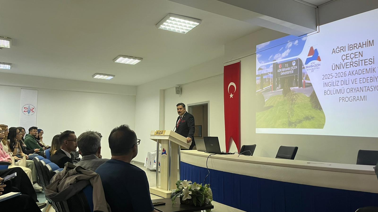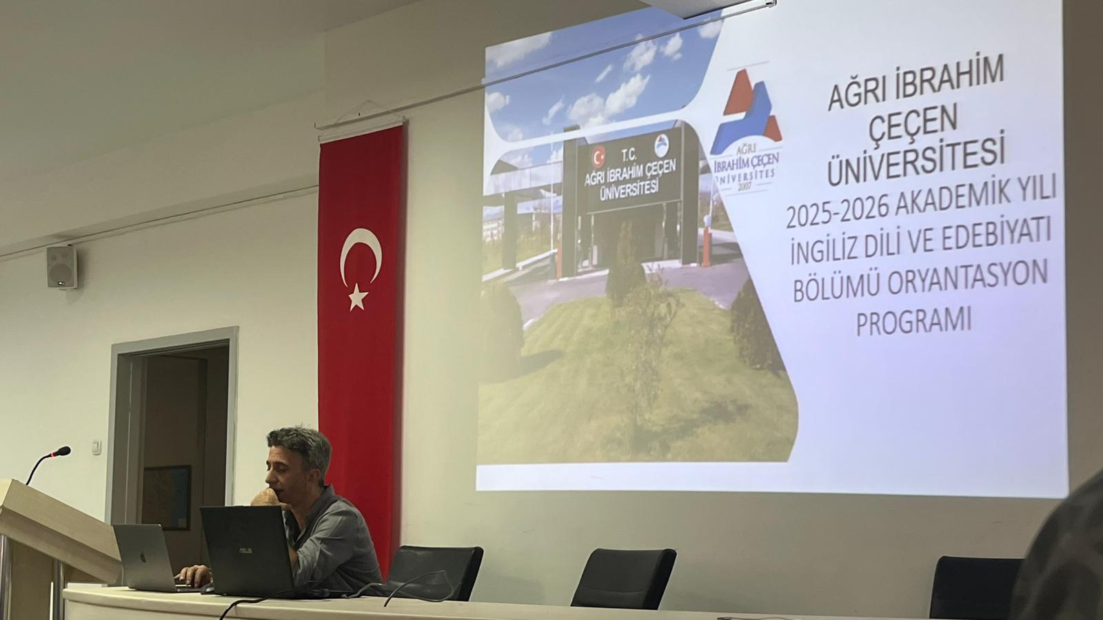 Bölümümüz 1. sınıf ögrencilerine yönelik Oryantasyon Programı gerçekleştirildi. Düzenlenen programa Fakültemiz Dekanı ve İngiliz Dili ve Edebiyatı Bölüm Başkanı Prof. Dr. Alperen KAYSERİLİ, Fakülte Sekreteri Onur MACİT, bölüm öğretim elemanları ve çok sayıda öğrenci katıldı. 1. sınıf öğrenci danışmanı Doç. Dr. Fikret GÜVEN’in sunumuyla gerçekleştirilen programda, öğrenciler üniversite, fakülte ve bölüm hakkında bilgilendirildi. Program, soru-cevap kısmının ardından sona erdi.