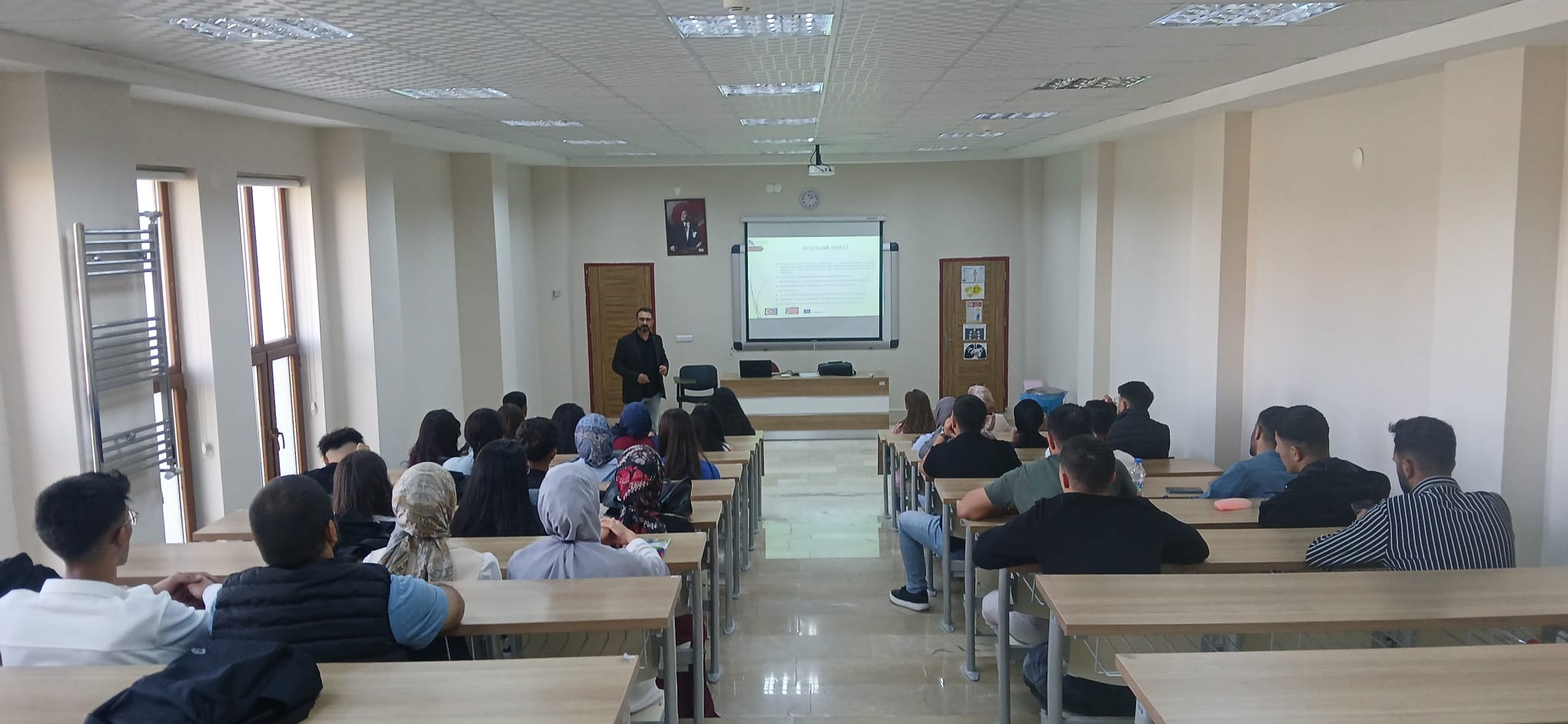 Eğitim kapsamında Erasmus programı hakkında genel bilgiler, başvuru süreci, öğrencilere sunulan akademik ve kültürel fırsatlar aktarıldı. Ayrıca öğrencilerin yurtdışında karşılaşabilecekleri farklı çalışma ortamlarına uyum sağlamaları için önerilerde bulunuldu.