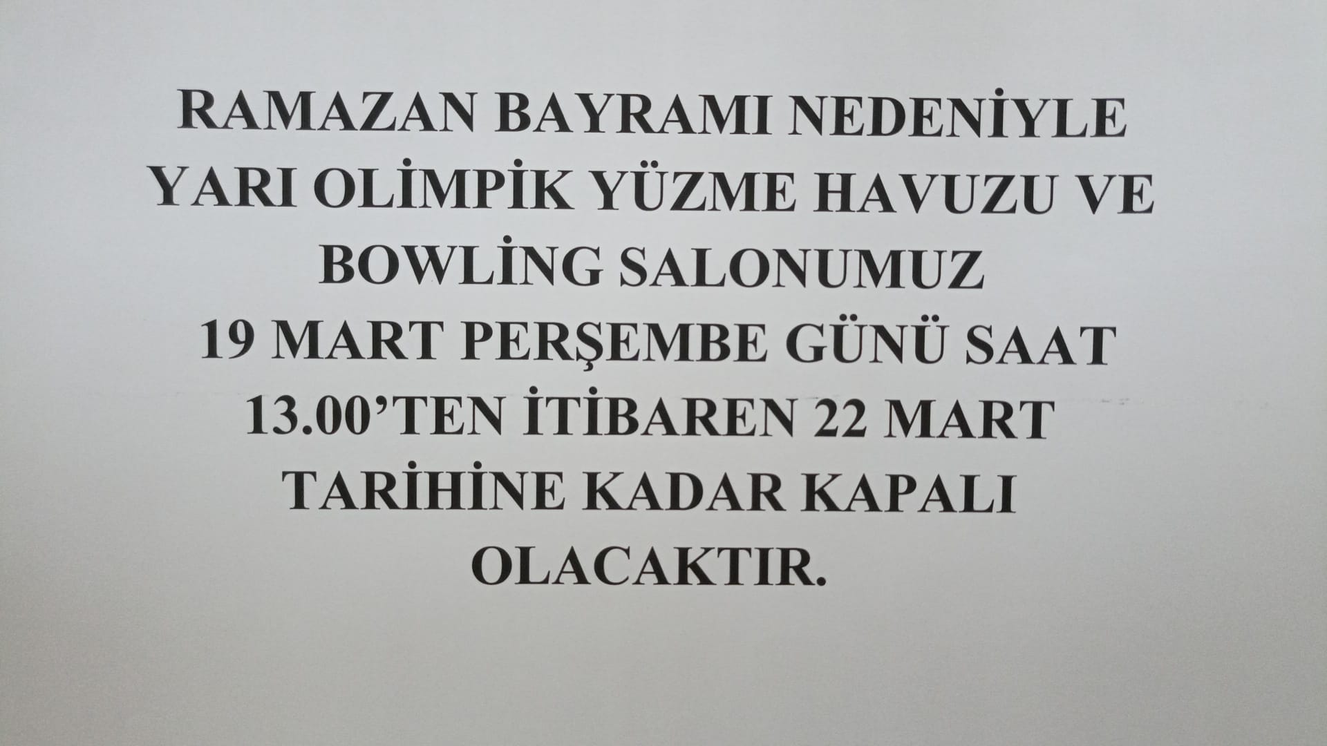 Yarı Olimpik Yüzme Havuzu Ve Bowling Bayram Tatili Süresince Kapalı Olacaktır