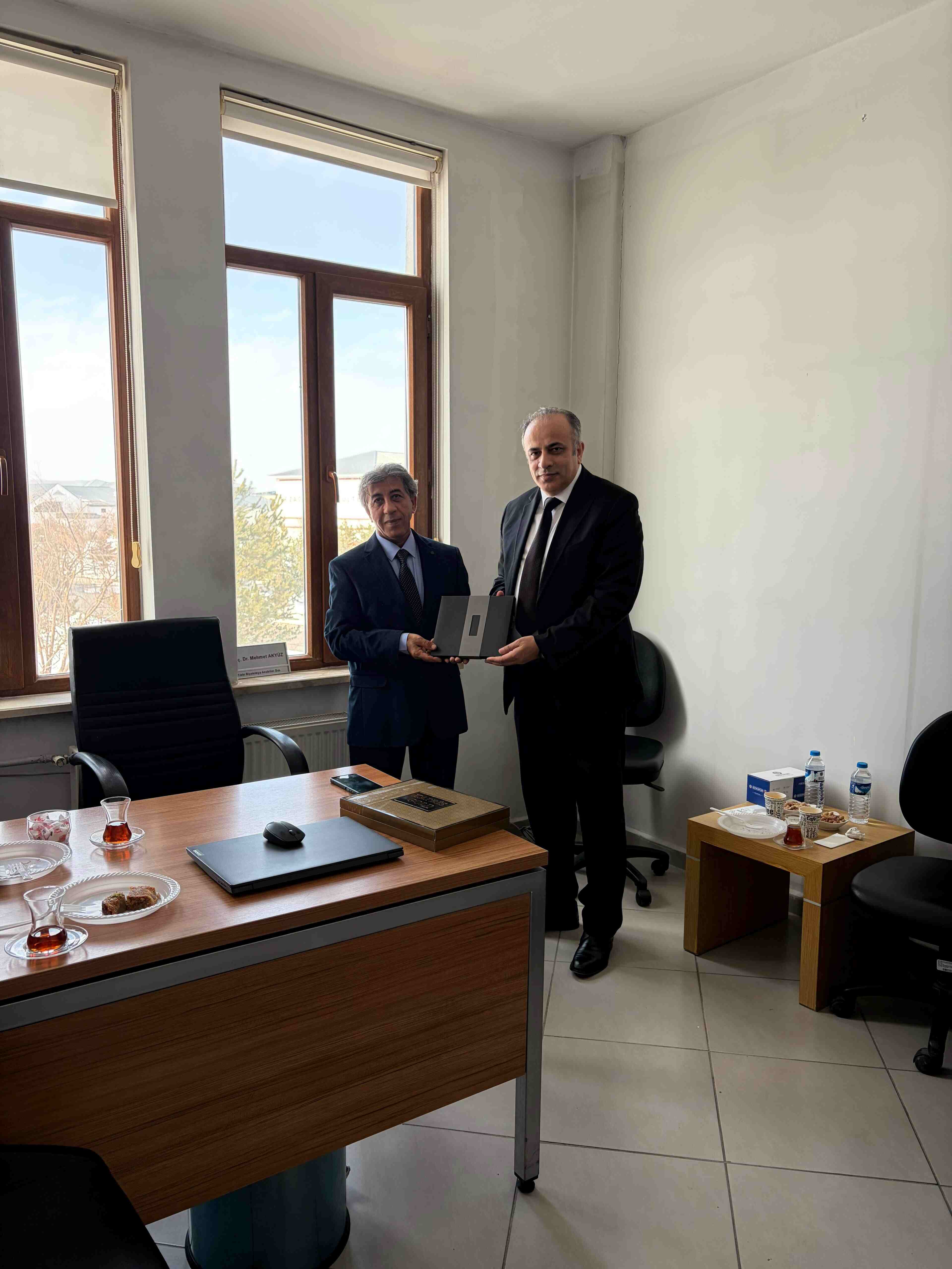 Fakültemiz Tıbbi Biyokimya Ana Bilim Dalı’nda göreve başlayan Doç. Dr. Mehmet Akyüz, Dekanımız Prof. Dr. Metin Akgün tarafından ziyaret edildi. Dekanımız Prof. Dr. Metin Akgün, Doç. Dr. Mehmet Akyüz’ün bilgi ve tecrübesinin fakültemize önemli katkılar sağlayacağına inandığını belirterek yeni görevinde başarılar diledi.