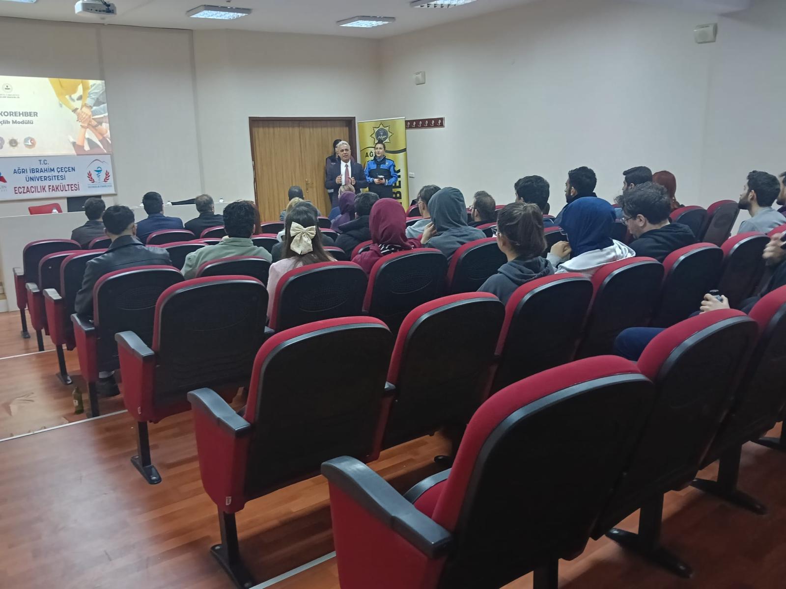 Fakültemizde, İl Emniyet Müdürlüğü ve Üniversitemiz Sağlık, Kültür ve Spor Daire Başkanlığı iş birliğinde, bağımlılıkla mücadele konusunda farkındalık oluşturmak ve öğrencilerimizi bilinçlendirmek amacıyla bilgilendirme eğitimi düzenlendi.