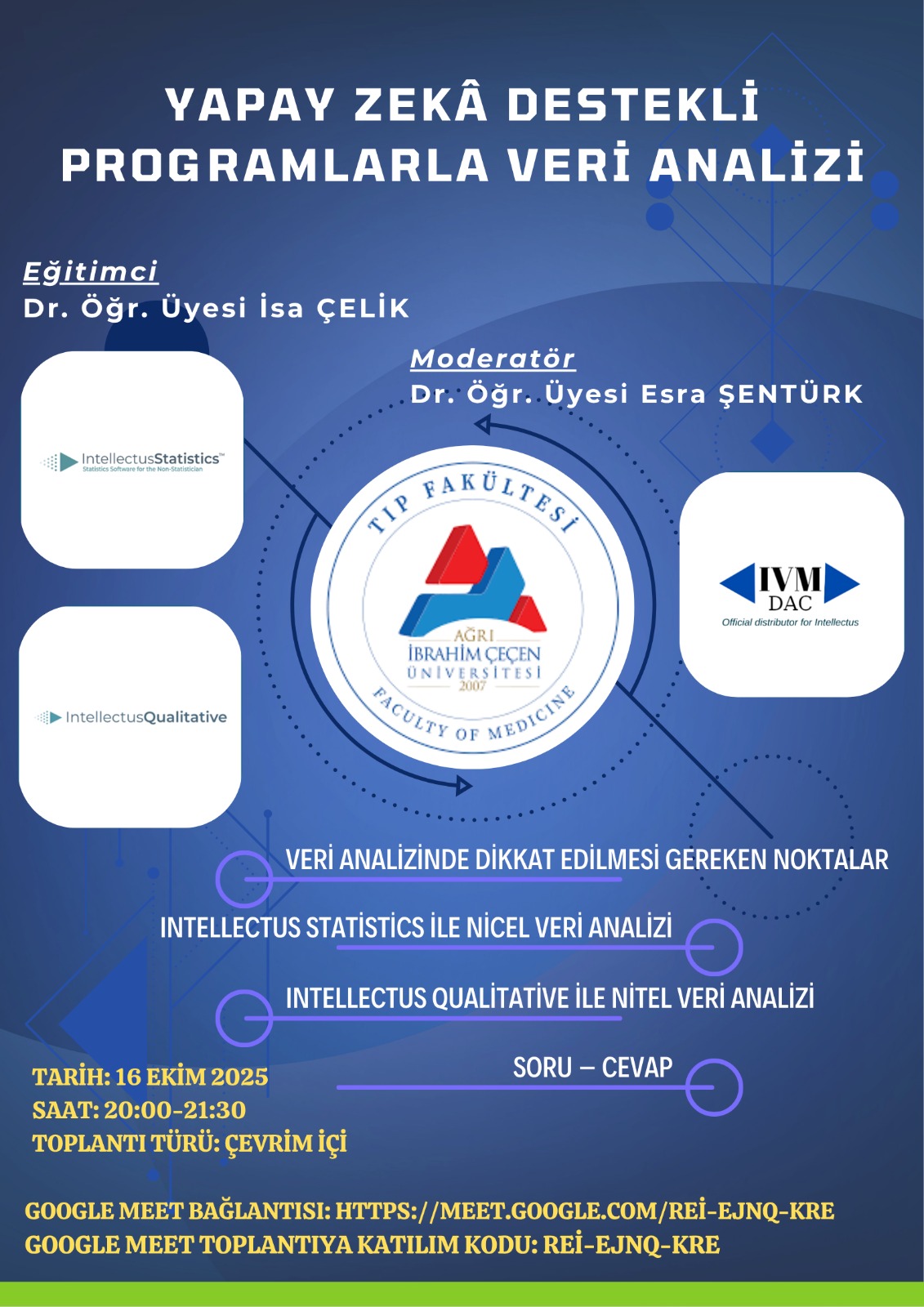 Ağrı İbrahim Çeçen Üniversitesi Tıp Fakültesi tarafından 16 Ekim 2025 tarihinde "Yapay Zeka Des...