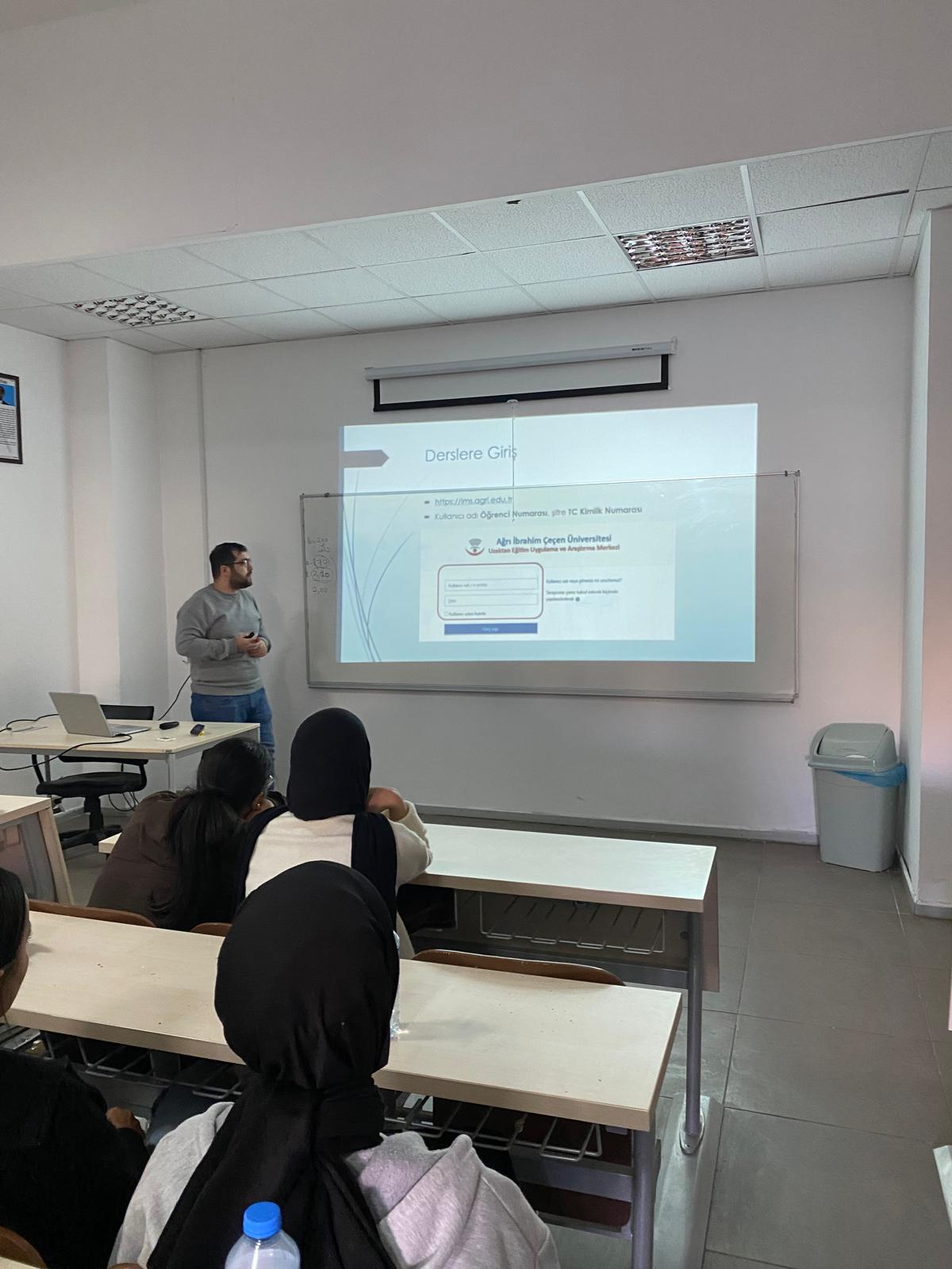 Programda Müdür Yardımcısı Dr. Öğr. Üyesi Turgay TOKSOY ile Müdür Yardımcısı Öğr. Gör. Ahmet BÜLBÜL öğrencilere önemli bilgilendirmelerde bulundu. Konuşmalarında akademik takvim, danışmanlık süreçleri, kampüs yaşamı ve resmi iletişim kanalları üzerinde durarak öğrencilerin yeni döneme hızlı ve bilinçli bir başlangıç yapmalarını hedeflediklerini vurguladılar. Öğrencilerin ders ve platformlara uyumunu kolaylaştıracak uygulama örnekleri de paylaşıldı.