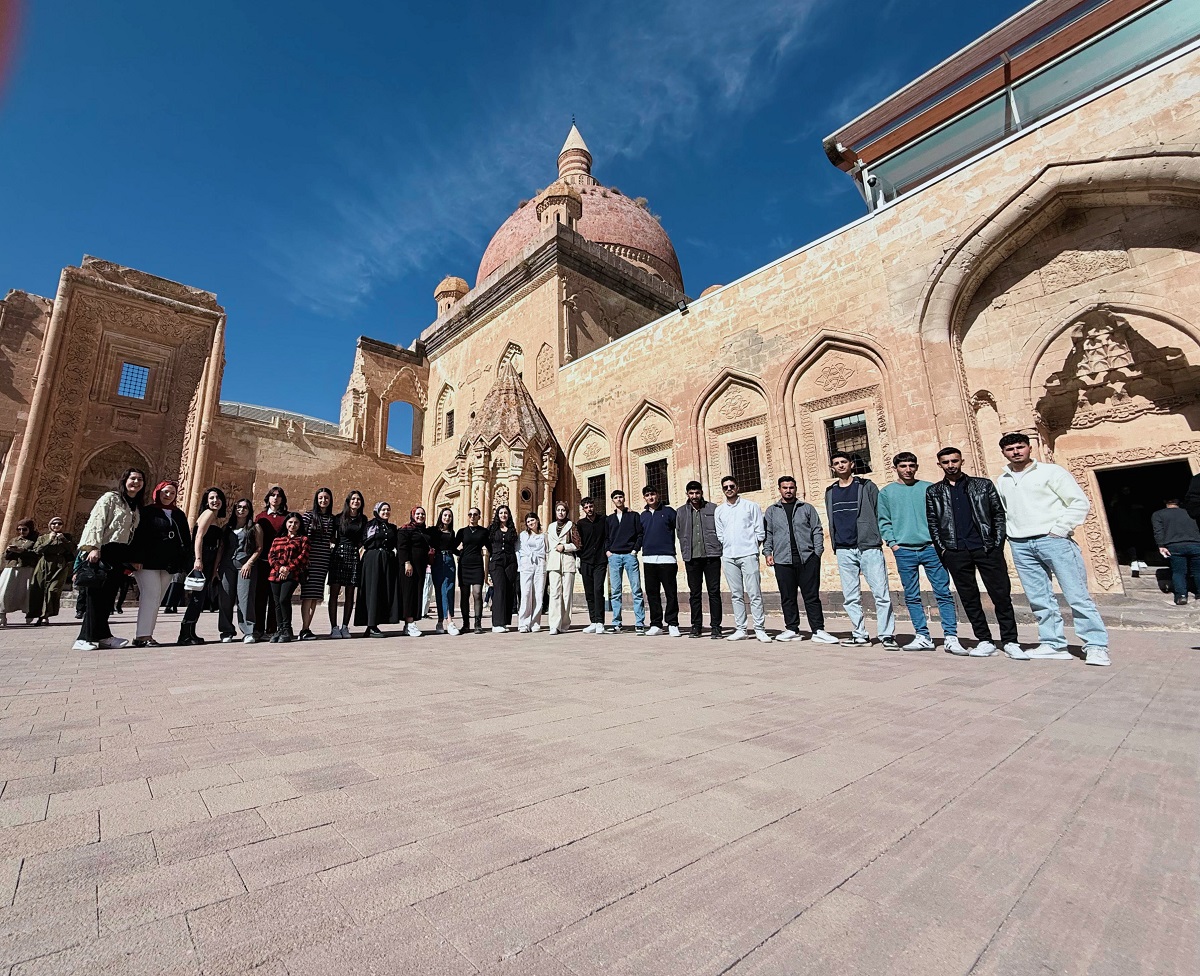 Eleşkirt Meslek Yüksekokulu Dinamik Gençlik Kulübü, kültürel ve tarihî değerleri yerinde görmek amacıyla Doğubayazıt’a bir gezi düzenledi. Saat 09.00’da Eleşkirt’ten hareket eden öğrencilerimiz, 11.00’de Ahmed-i Hânî Türbesi’ni ziyaret etti. Ardından İshak Paşa Sarayı gezilerek yapının mimarisi ve tarihçesi hakkında bilgi alındı. Programın devamında Ahmed-i Hânî Müzesi’ne gidilerek düşünce dünyası ve eserlerine dair sergiler inceleme fırsatı bulundu. Saat 14.00’te öğle yemeği molası veren grup, 15.00–16.00 saatleri arasında serbest zamanla Doğubayazıt’ı bireysel olarak keşfetti. Etkinlik, saat 16.30’da dönüş için yola çıkılmasıyla tamamlandı.