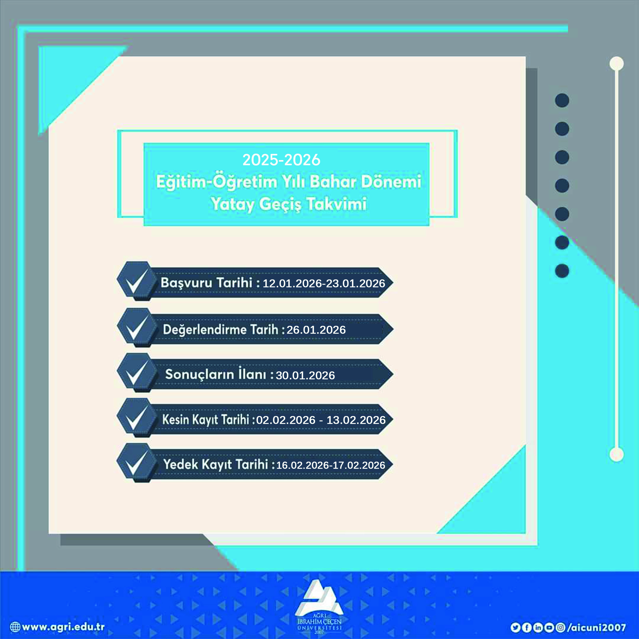 2025-2026 Eğitim-Öğretim Yılı Bahar Yarıyılı Yatay Geçiş Başvuru Tarihleri.