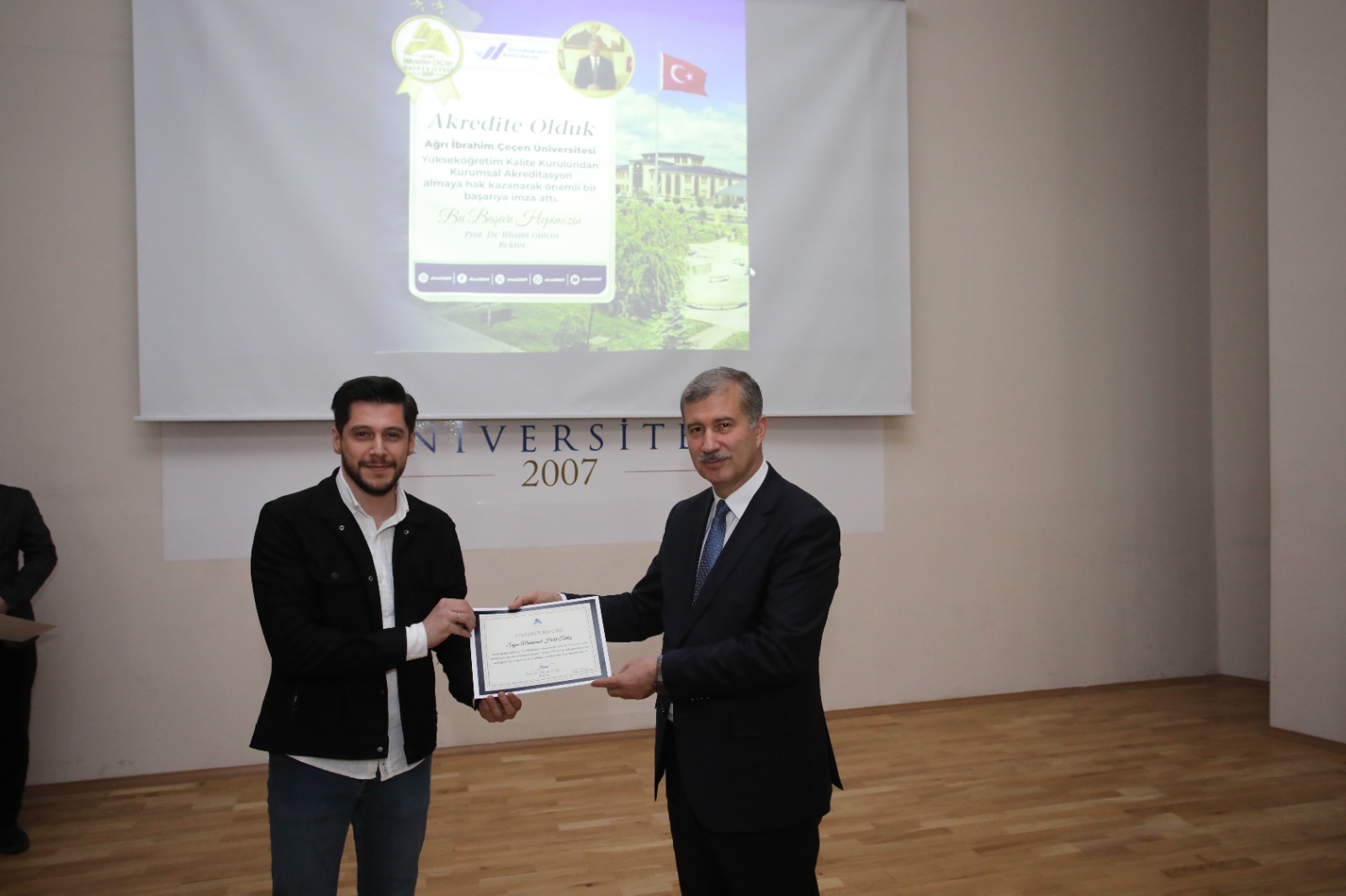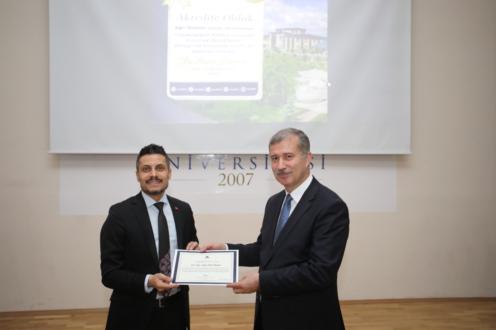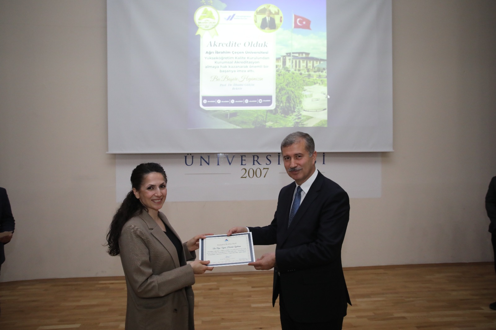 Yükseköğretim Kalite Kurulundan (YÖKAK) ilk kez "Kurumsal Akreditasyon" almaya hak kazanan Ağrı İbrahim Çeçen Üniversitesi (AİÇÜ) kalite yolculuğuna hız kesmeden devam ediyor. Akreditasyon değerlendirme sürecinde üstün gayret gösteren personelimize, düzenlenen toplantı ile teşekkür belgeleri takdim edildi.
