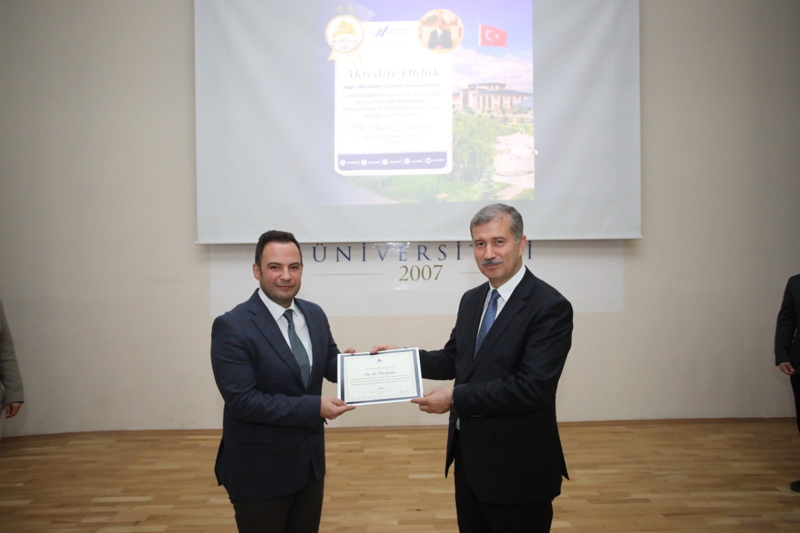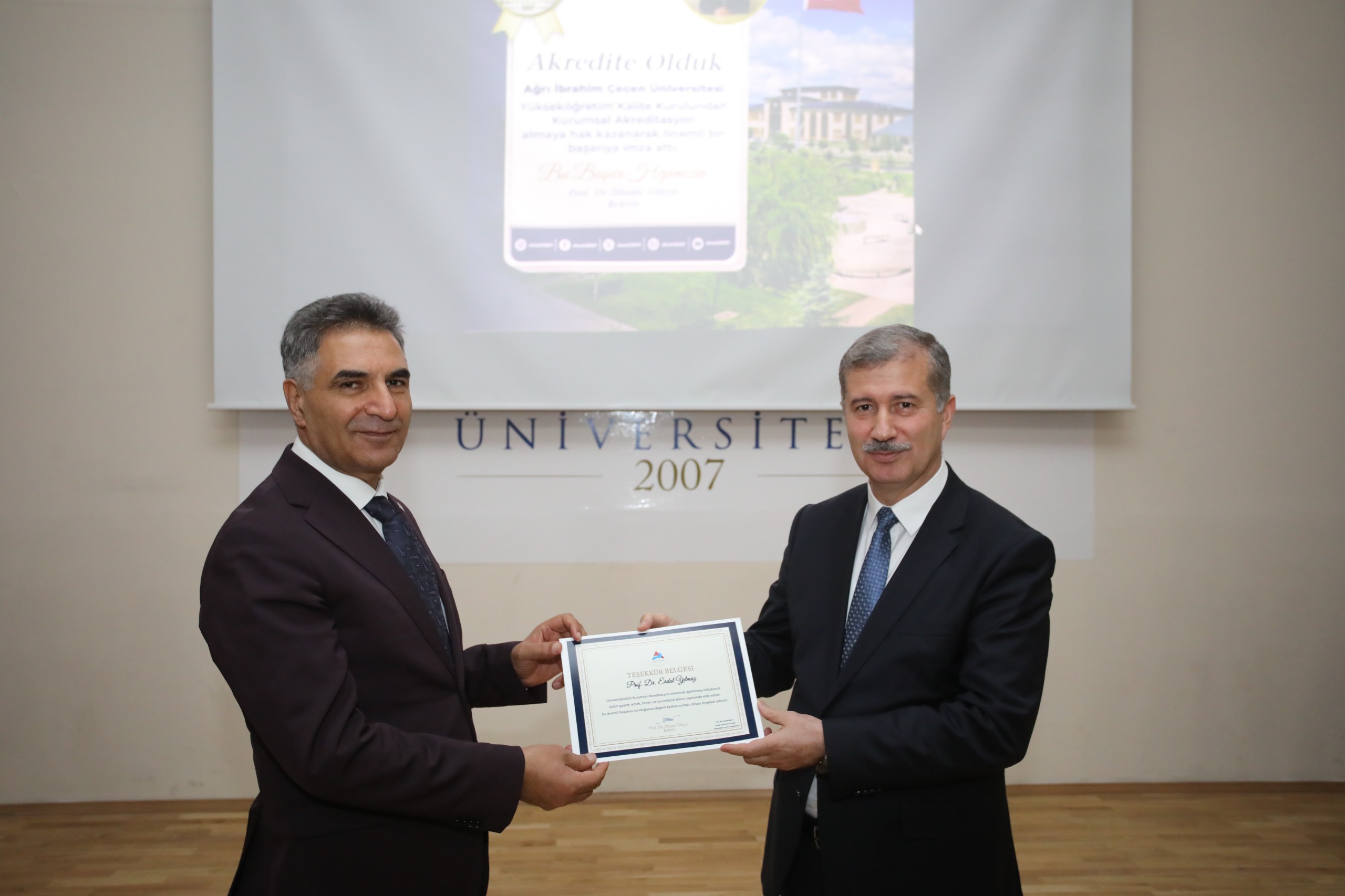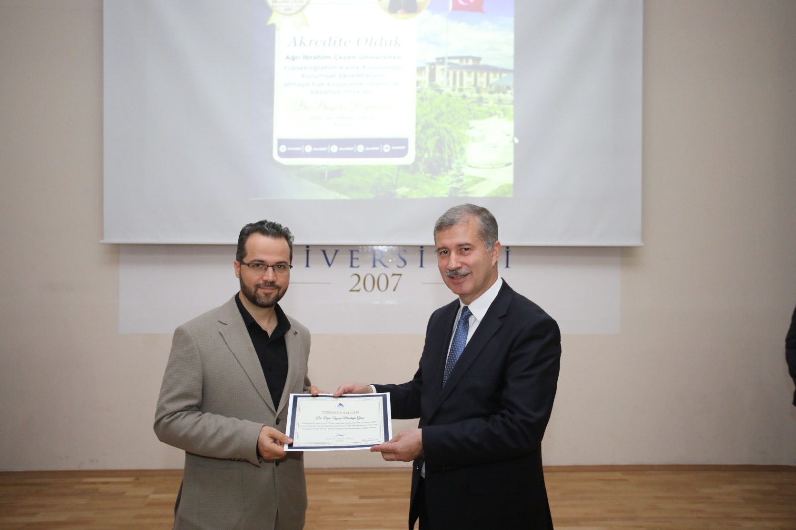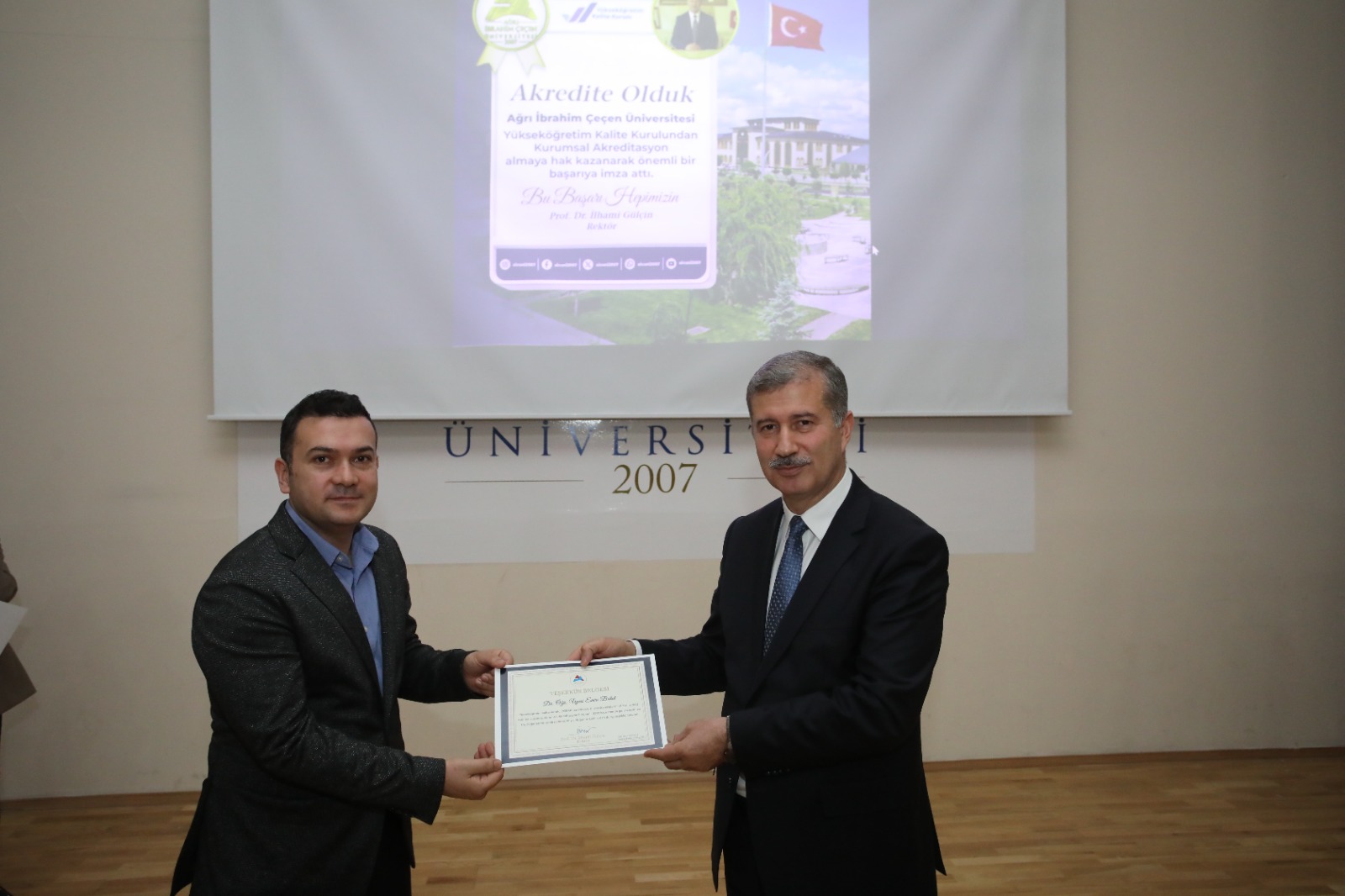 Yükseköğretim Kalite Kurulundan (YÖKAK) ilk kez "Kurumsal Akreditasyon" almaya hak kazanan Ağrı İbrahim Çeçen Üniversitesi (AİÇÜ) kalite yolculuğuna hız kesmeden devam ediyor. Akreditasyon değerlendirme sürecinde üstün gayret gösteren personelimize, düzenlenen toplantı ile teşekkür belgeleri takdim edildi.