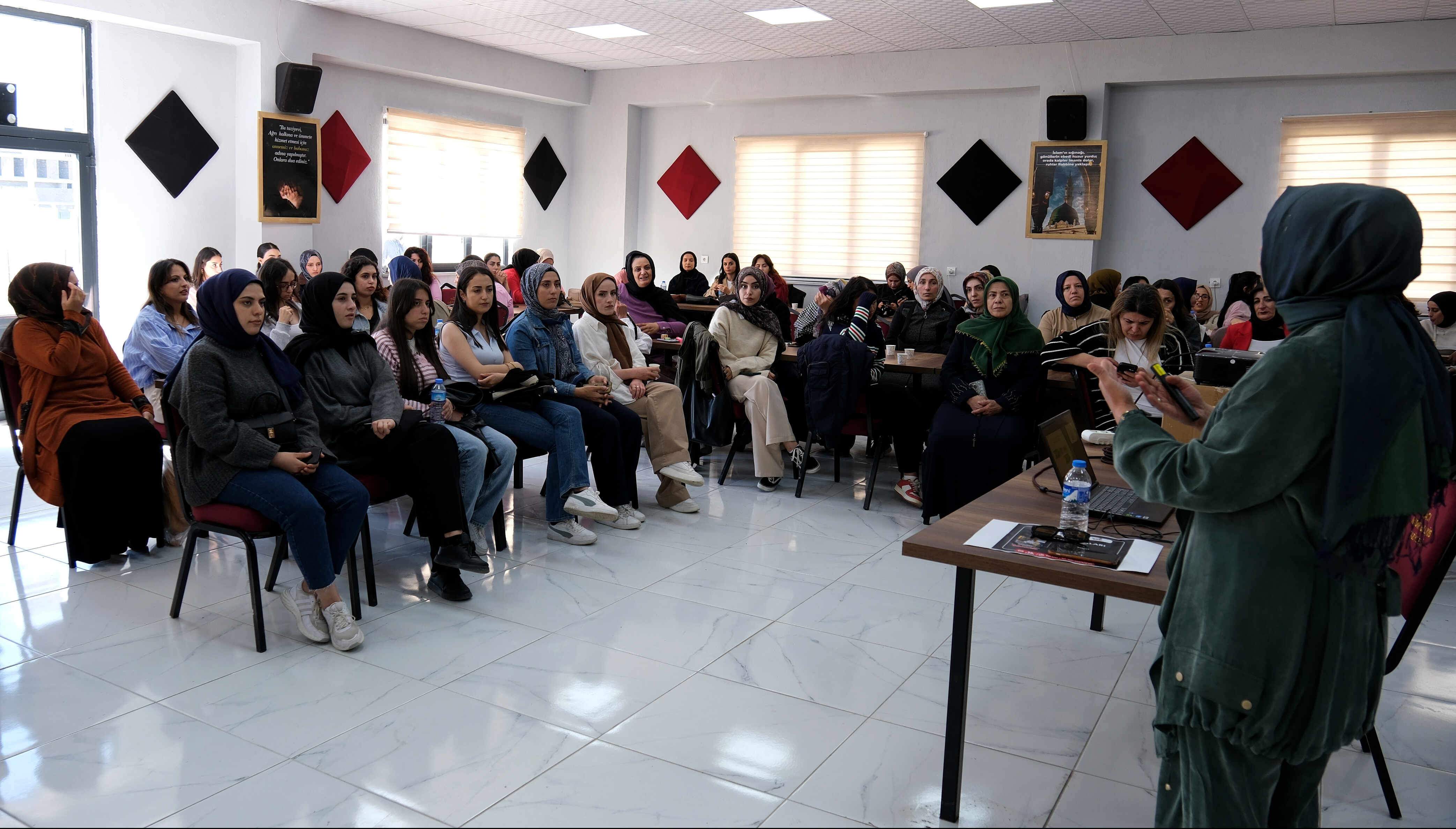 Konferansta, Merkez Müdürü Doç. Dr. Gülpınar Aslan, katılımcı kadınlara sağlıklı yaşlanma için günlük yaşam alışkanlıklarının önemi, fiziksel ve zihinsel sağlığın korunması ile uzun yaşamın pratik yöntemleri hakkında kapsamlı bilgiler verdi. Etkinlik, kadınların yaşam kalitesini artırmaya yönelik farkındalık oluşturmayı amaçladı.