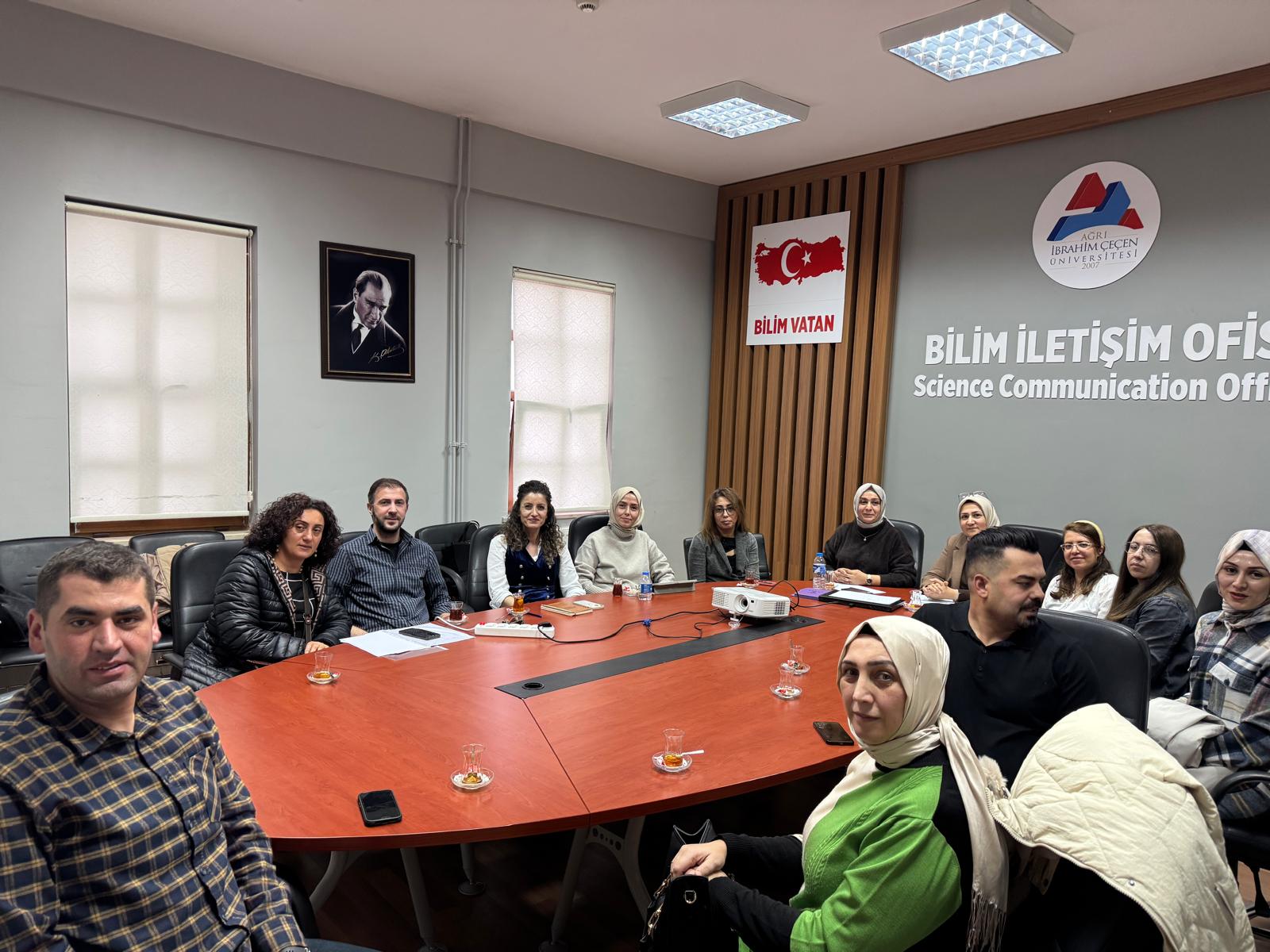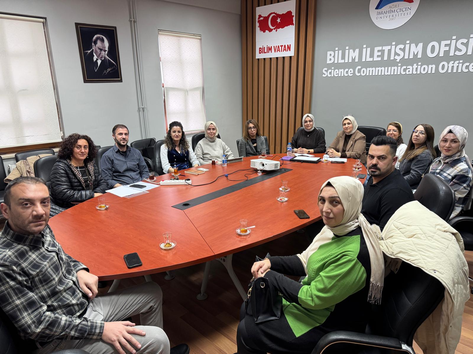 Ağrı İbrahim Çeçen Üniversitesi Kadın Sorunları Uygulama ve Araştırma Merkezi’nin Danışma ve Yönetim Kurulu, 8 Aralık 2025 Pazartesi günü bir araya geldi. Toplantıda 2026 yılında gerçekleştirilecek faaliyetler kapsamında köylerde bilim kafe söyleşileri, kız çocuklarına yönelik çalıştay, köylerde eğitim programları ve kadın sempozyumu konularında düzenlenmesi planlanan proje çalışmaları ele alındı. Merkez, yeni dönemde kadın ve kız çocukları odaklı saha çalışmalarını artırarak yoluna devam edecek.