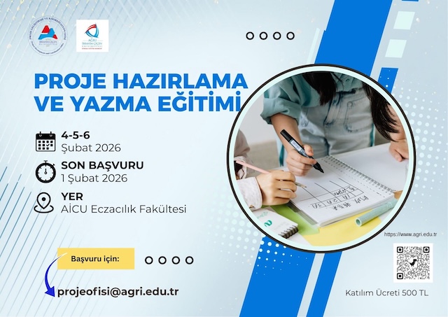 ⏰ Şubat ayında gerçekleşecek eğitimimiz için geri sayım başladı. Sınırlı kontenjan için yerlerinizi ayırtın! Kayıt ve detaylı bilgi için ofisimiz mail adresinden bize ulaşabilirisiniz. projeofisi@agri.edu.tr Not: Eğitimimiz akademisyenlere ve lisansüstü öğrencilere yöneliktir.