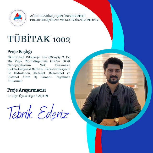 Tıp Fakültesinden Dr. Öğr. Üyesi Ergin Taşkın’ın araştırmacı olduğu “İkili Kobalt Dikalkojenitler (MCo₂S₄; M: Cr, Mn Veya Fe)-İndirgenmiş Grafen Oksit Nanoyapılarının Tek Basamaklı Elektrokimyasal Sentezi, Karakterizasyonu Ile Hidrokinon, Katekol, Resorsinol ve Bisfenol A’nın Eş Zamanlı Tayininde Kullanımı” başlıklı proje TÜBİTAK 1002 programı kapsamında destek almaya hak kazandı.